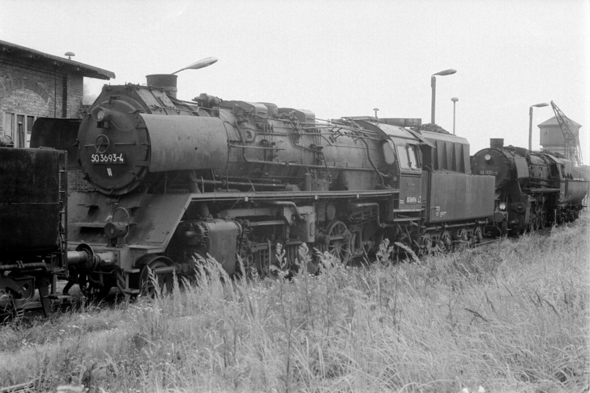 50 3693 und 52 8141 im Bw Angermünde Okt 84