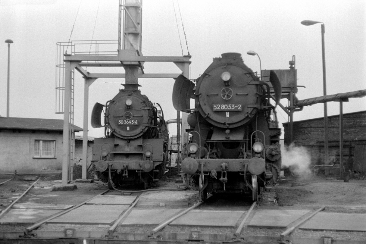 50 3693 und 52 8053 im Bw Angermünde Okt 84