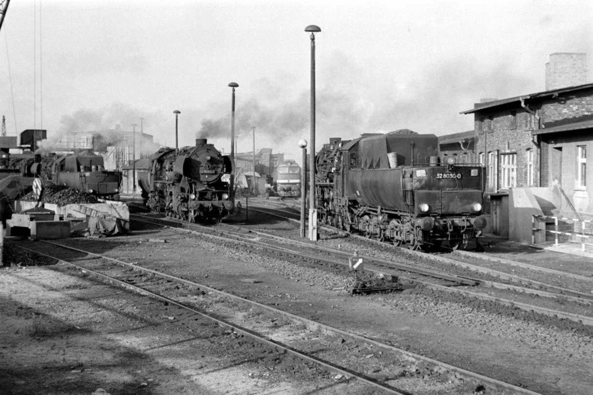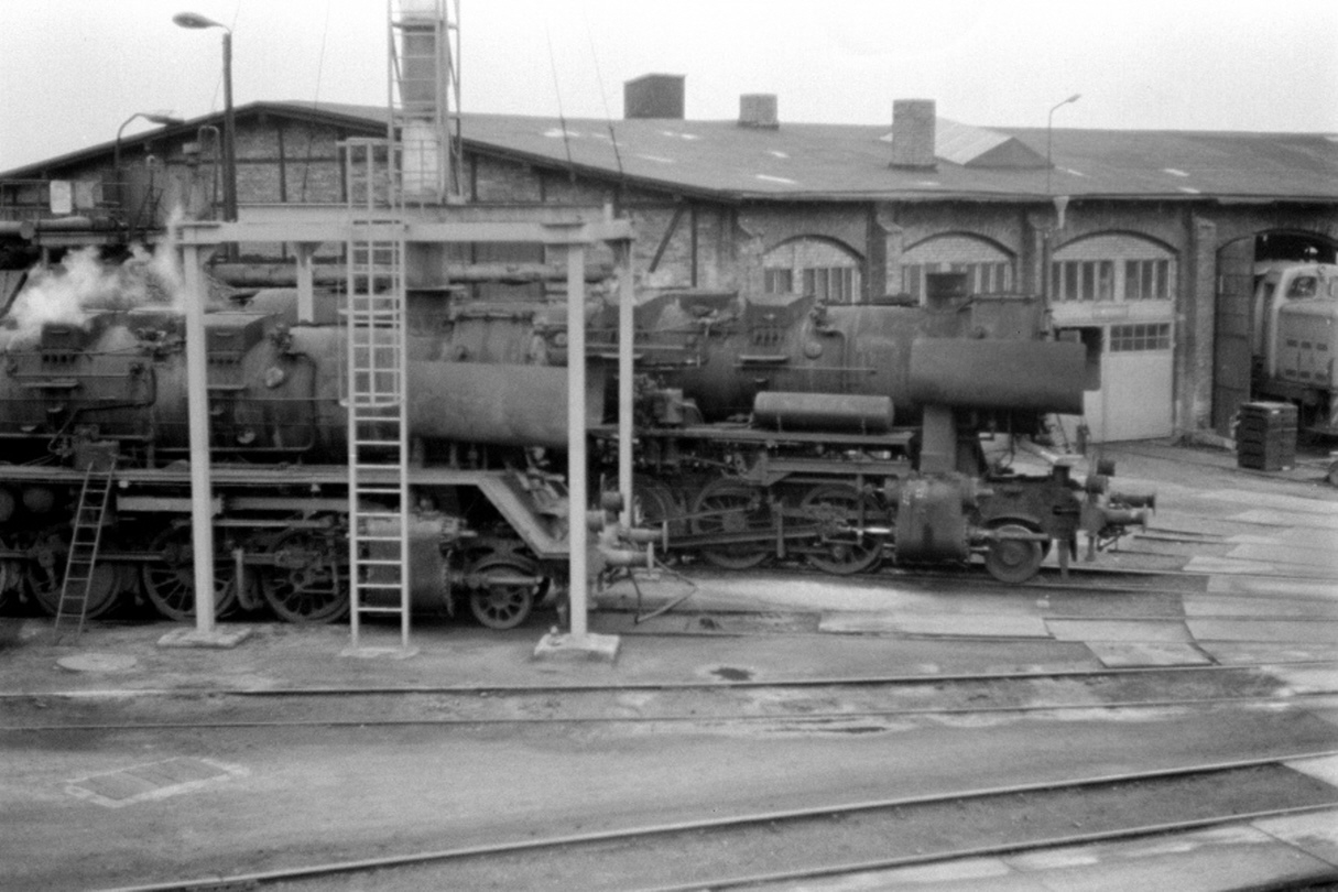 52 8187 und 52 8024 im Bw Angermünde Juli 86