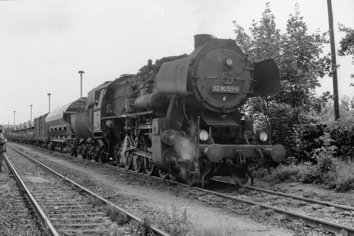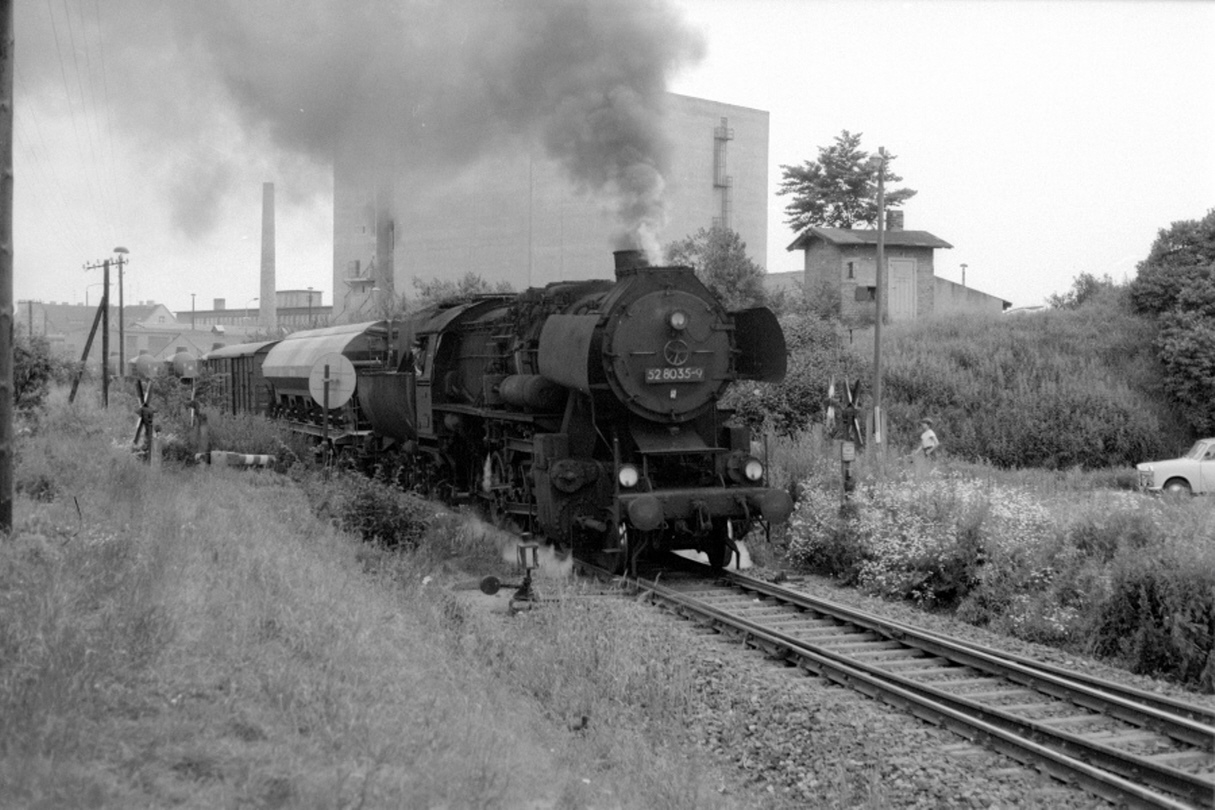 52 8035 bespannte den Nachmittags Nahgüterzug nach Schwedt Juli 84