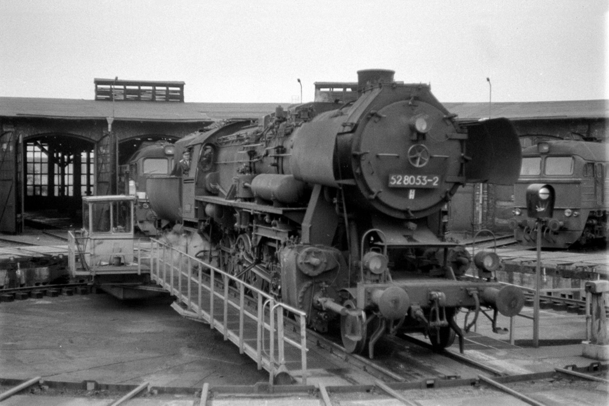 52 8053 auf der Drehscheibe im Bw Angermünde Okt 84