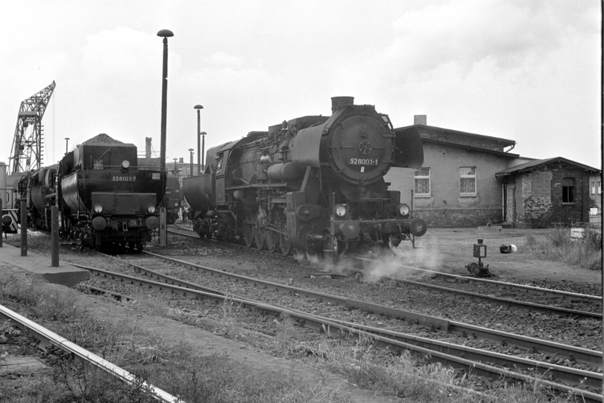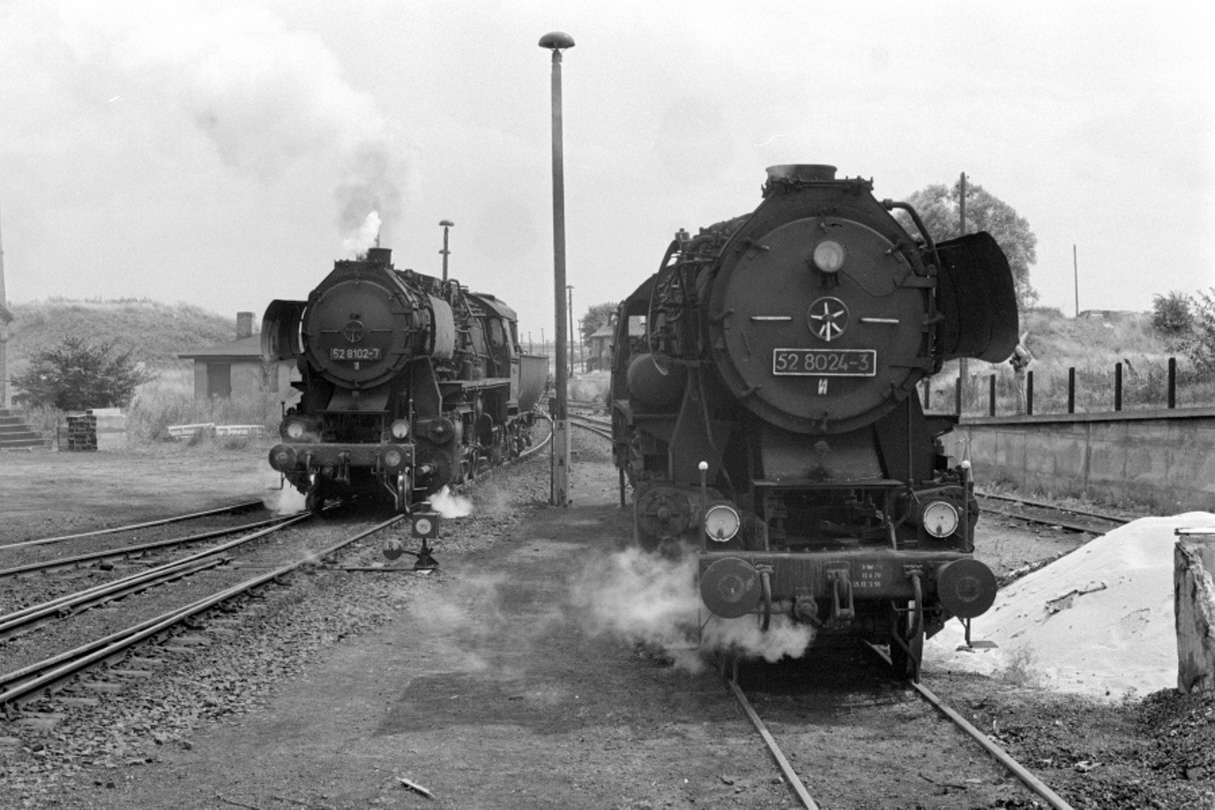 52 8102 und 52 8024 im Bw Angermünde Juli 86