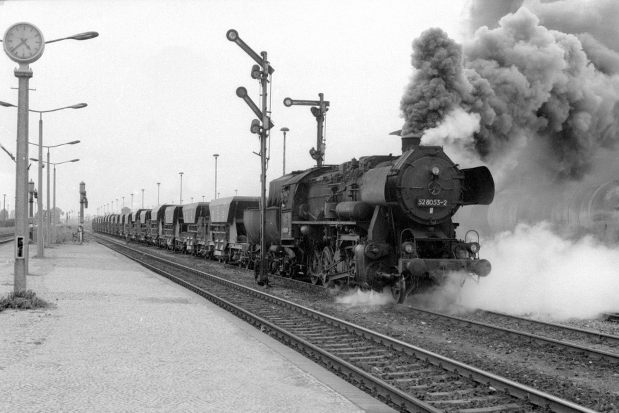 52 8053 bespannte einen Schotterzug nach Berlin Angermünde Okt 84