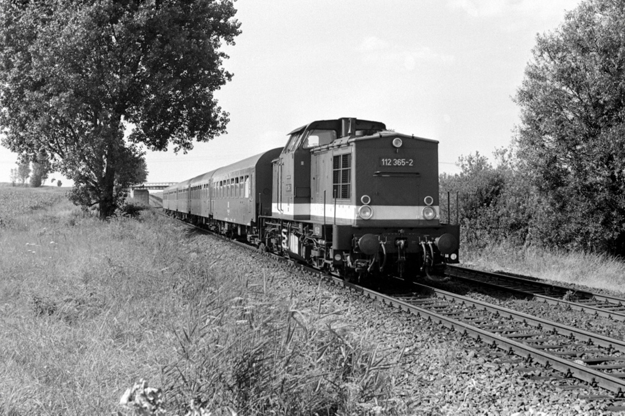 112 365 kommt mit P-Zug aus Tantow Okt 84