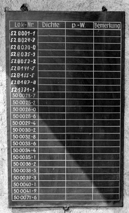 Hier die Loktafel im Bw Angermünde 52 8102 fehlt noch auf der Tafel
