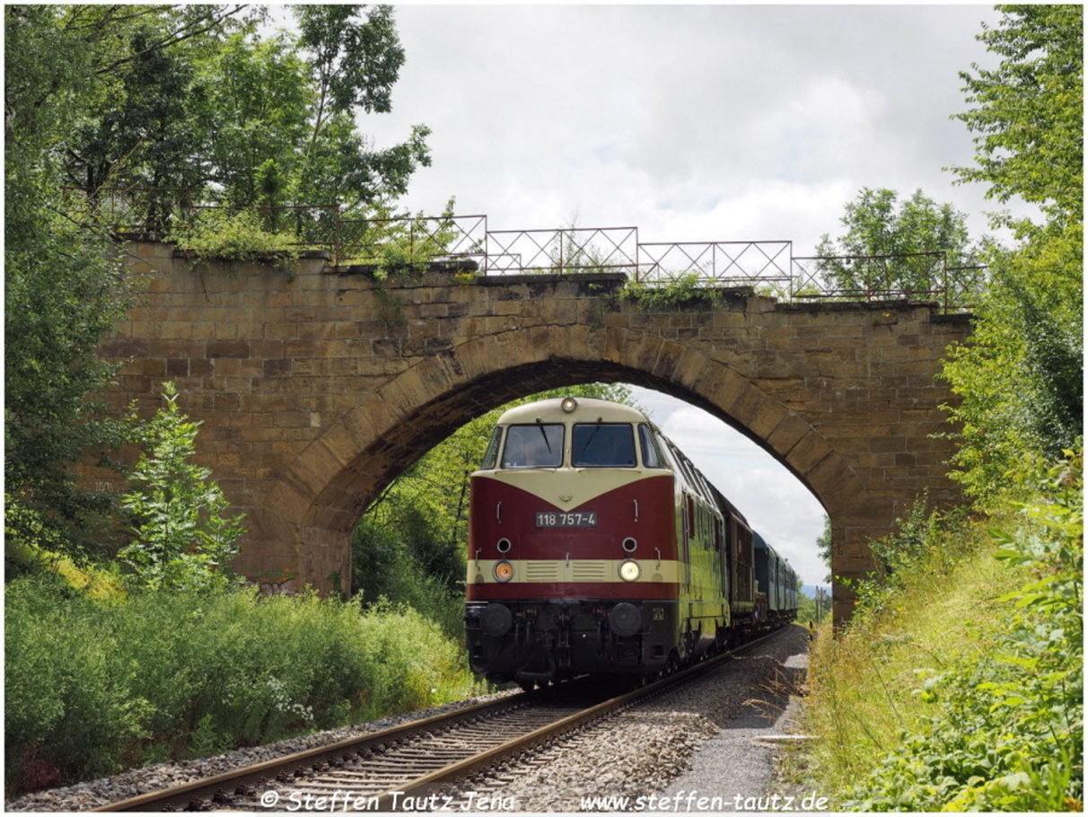118 757 der Press mit Drogenzug in Krölpa am 1.7.2024