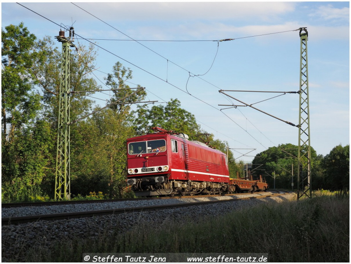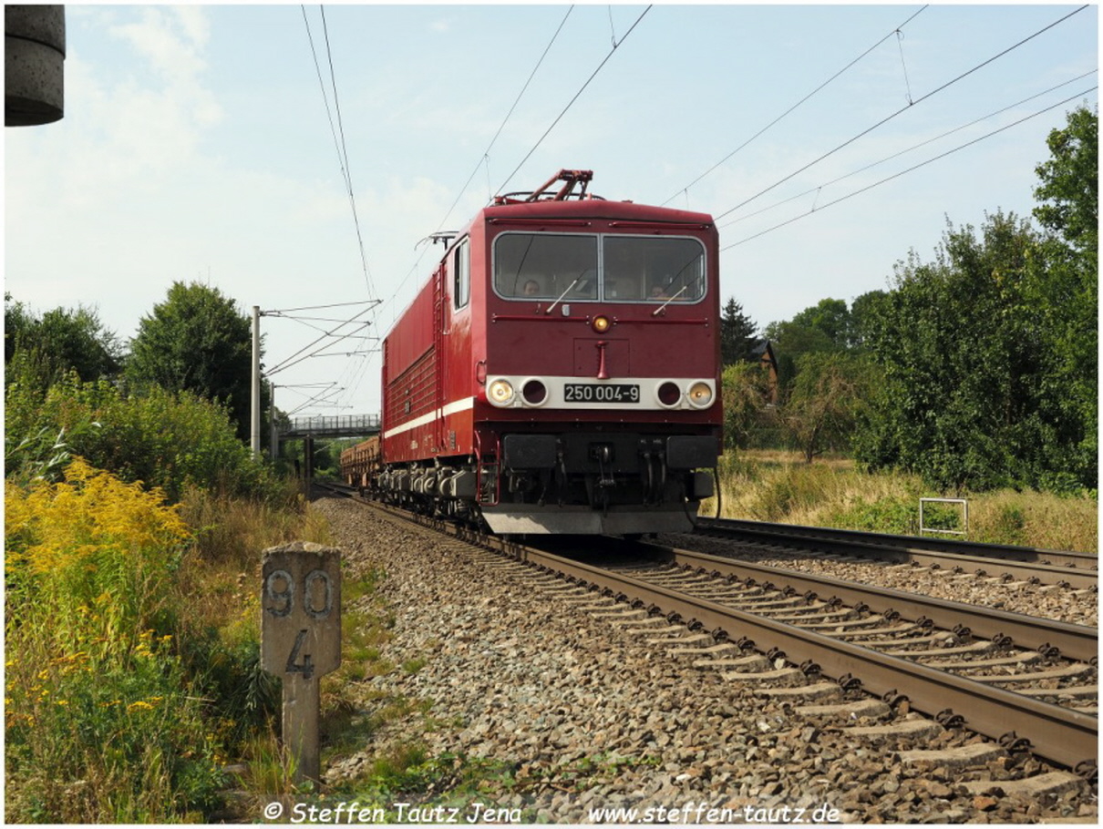 250 004 Budamar mit Leerschienenzug in Göschwitz 11.8.2024