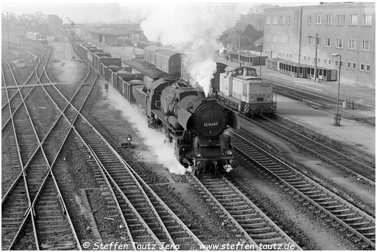 Die Falkenberger Loks wendeten auch in Eilenburg 52 5660 ist mit dem Nahgüter angekommen Mai 85