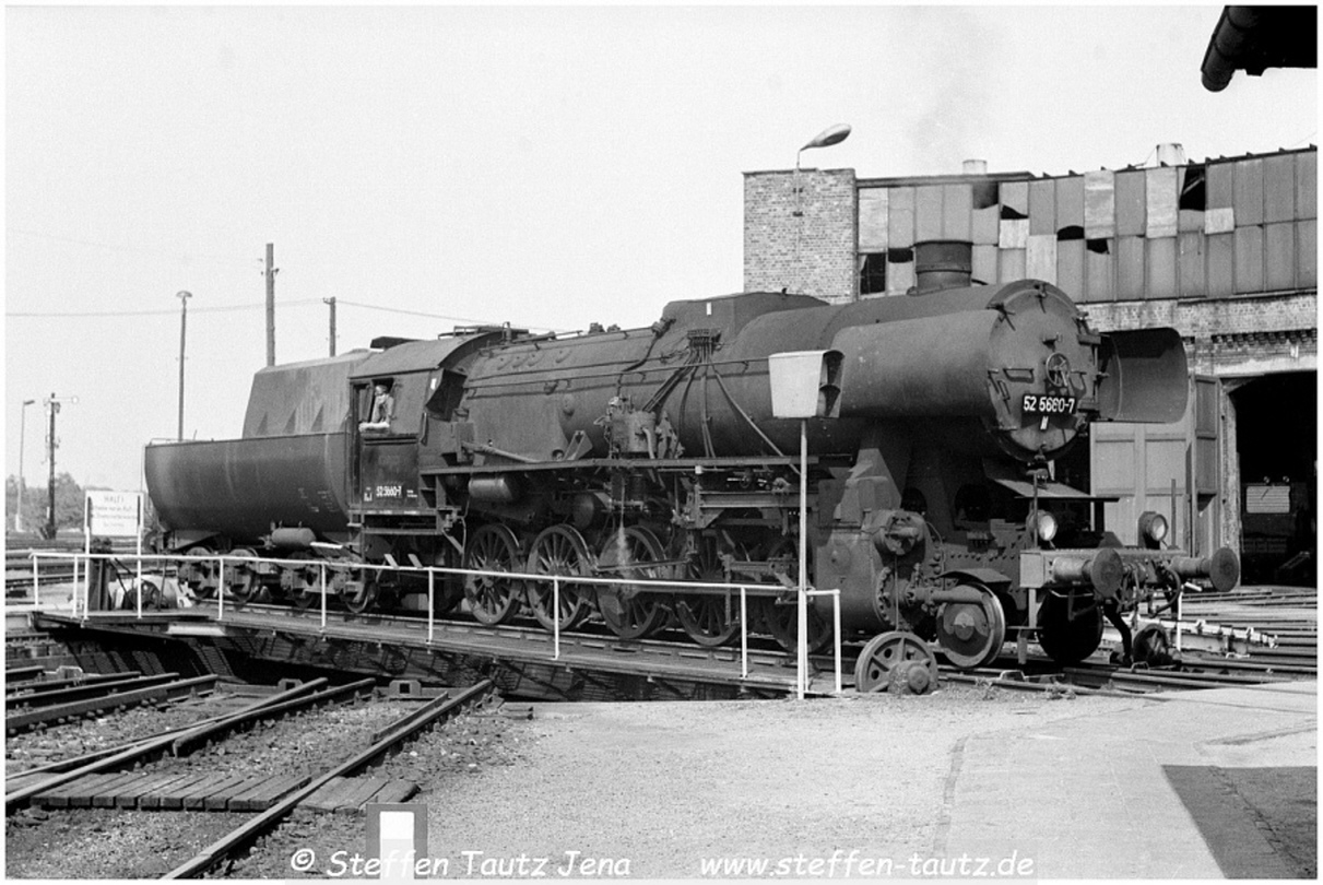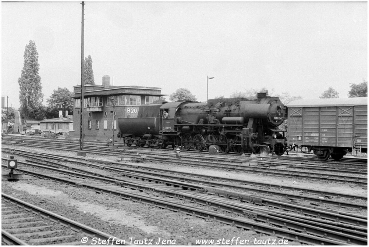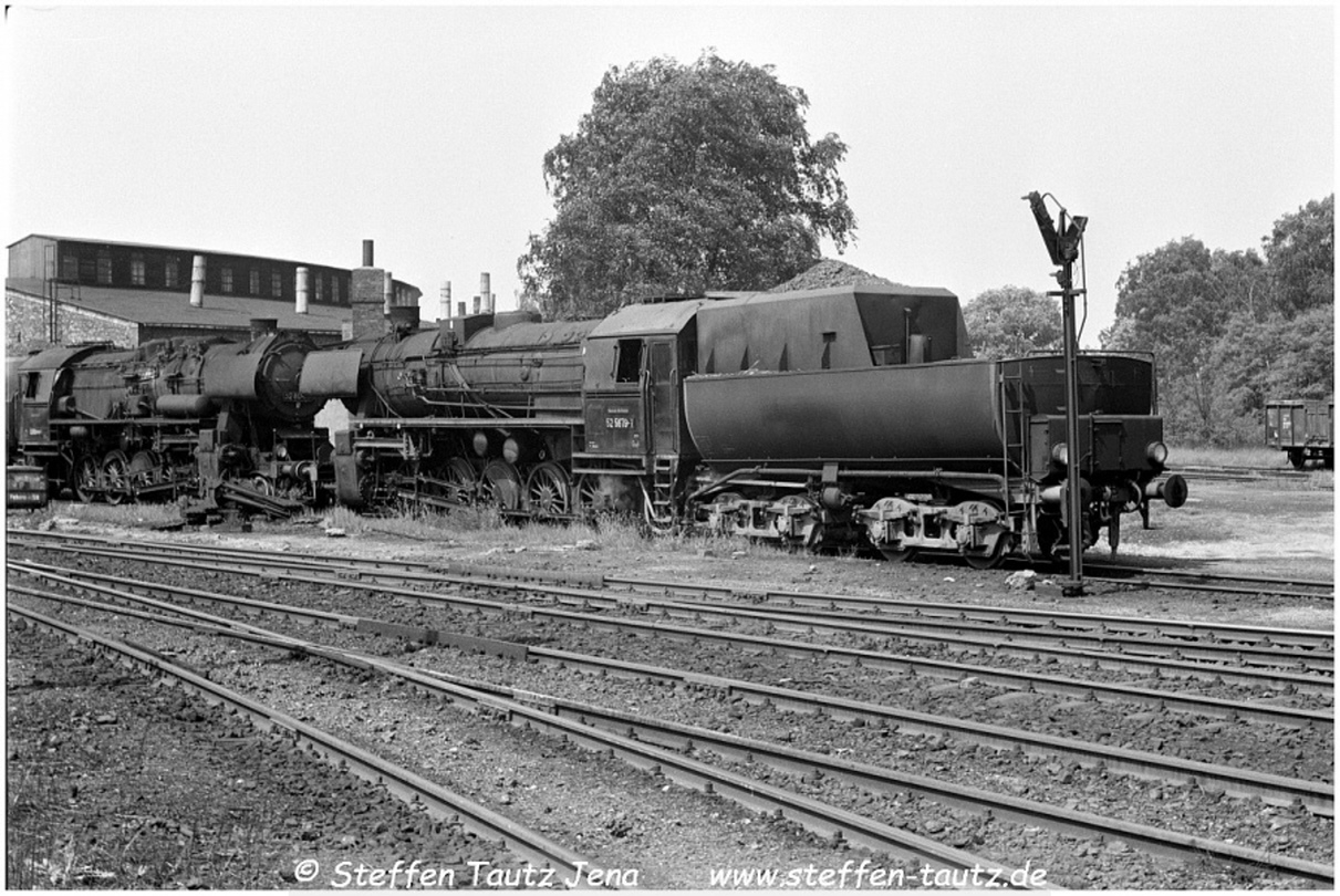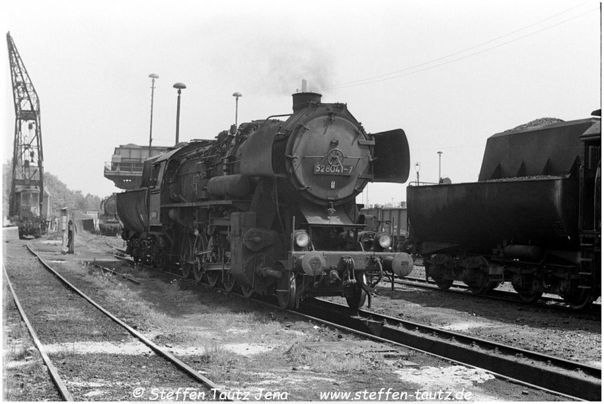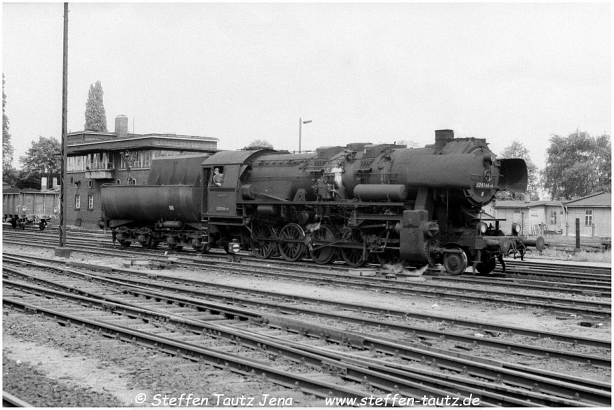 52 8146 war eine der drei Planloks des Bw Lutherstadt Wittenberg, hier setzt sie ins obere Bw zum Restaurieren um Juli 84