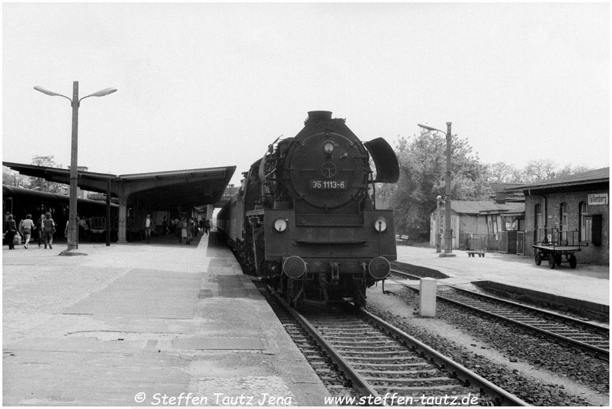 Freitag und Sonntags kam die 35 1113 mit dem E 944 durch Falkenberg. Ich fuhr dann im Zug mit. Juli 85
