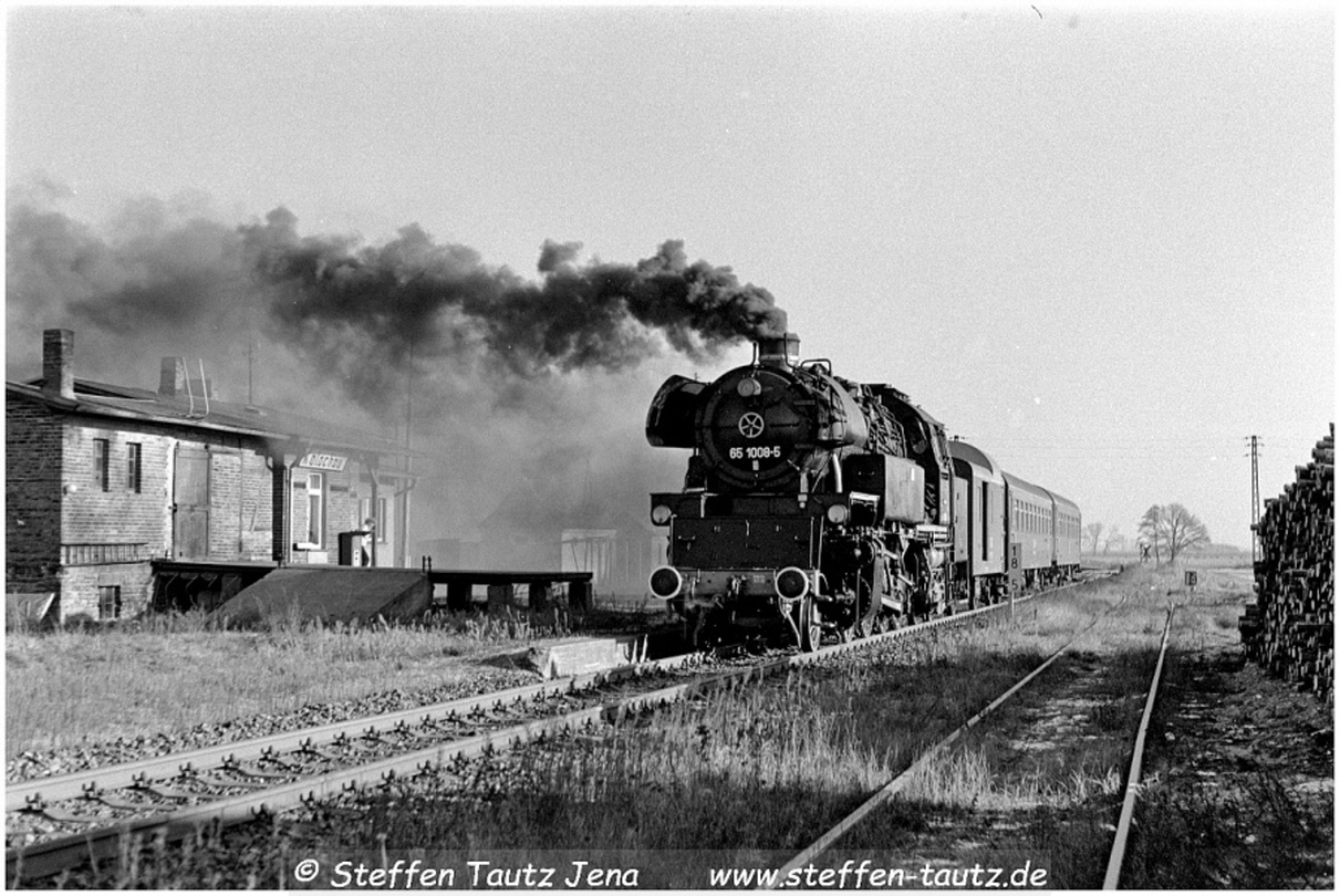 65 1008 Heizlok aus Luckau, kam mit P-Zug aus Lübben in Kolochau zum stehen Nov 89