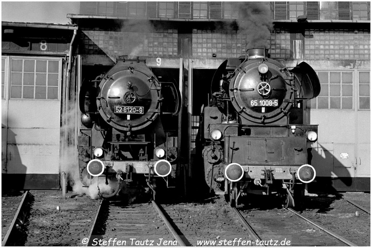 52 8041 und 52 8025 nebeneinander im Bw Mai 85