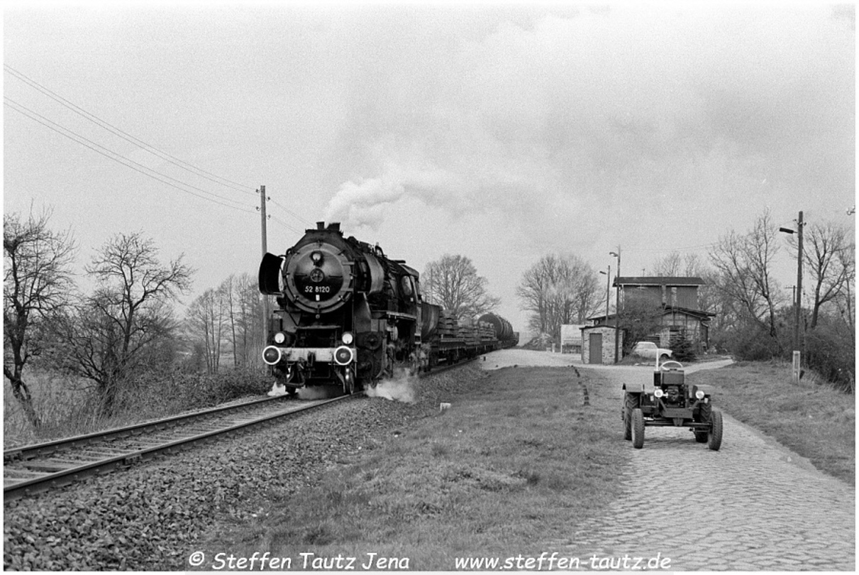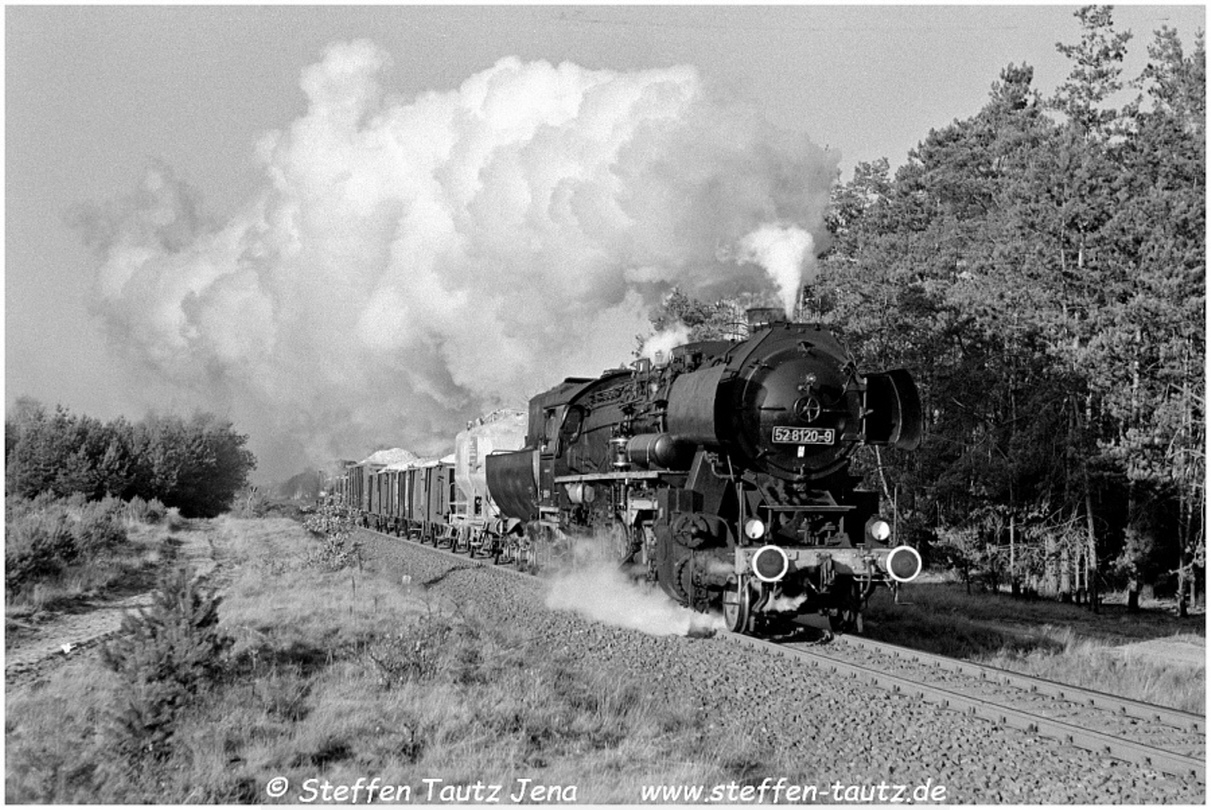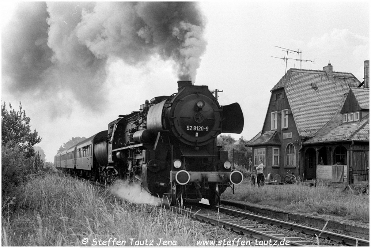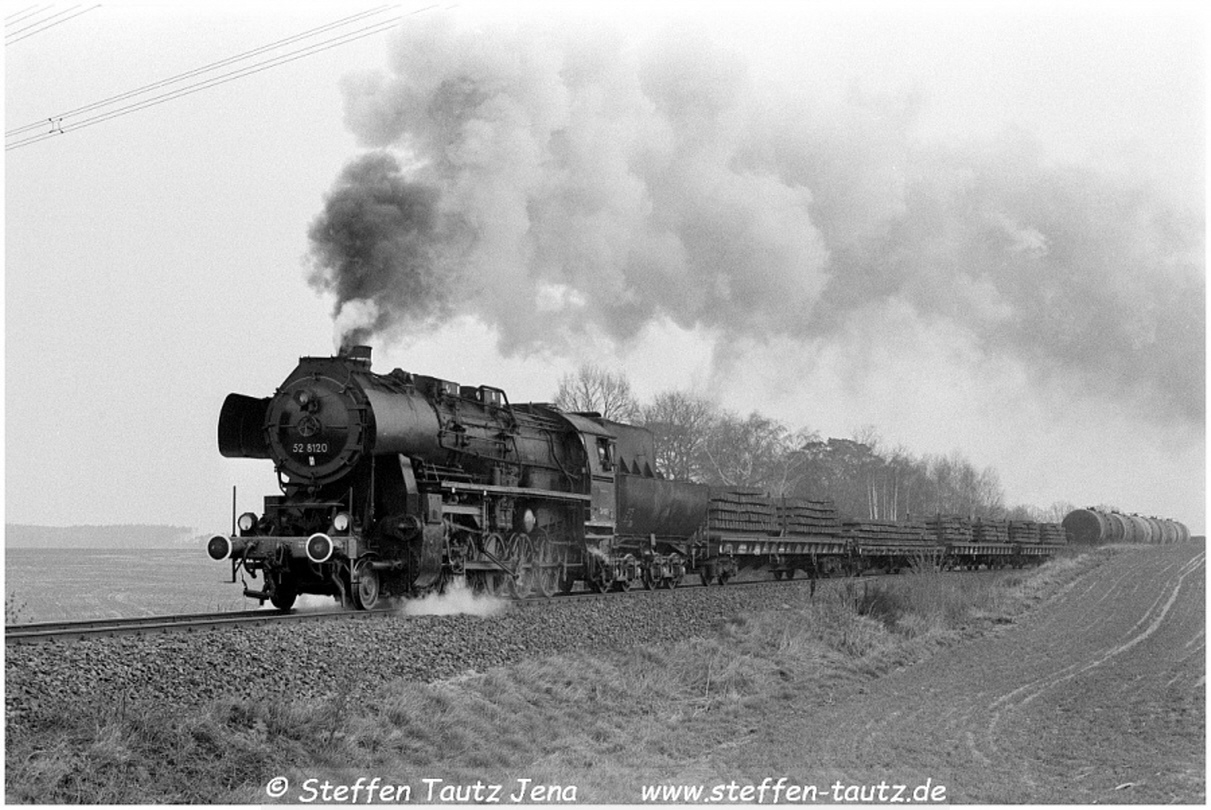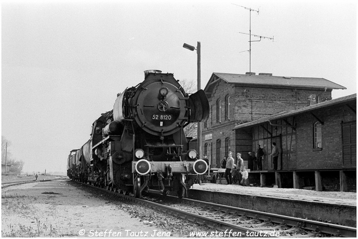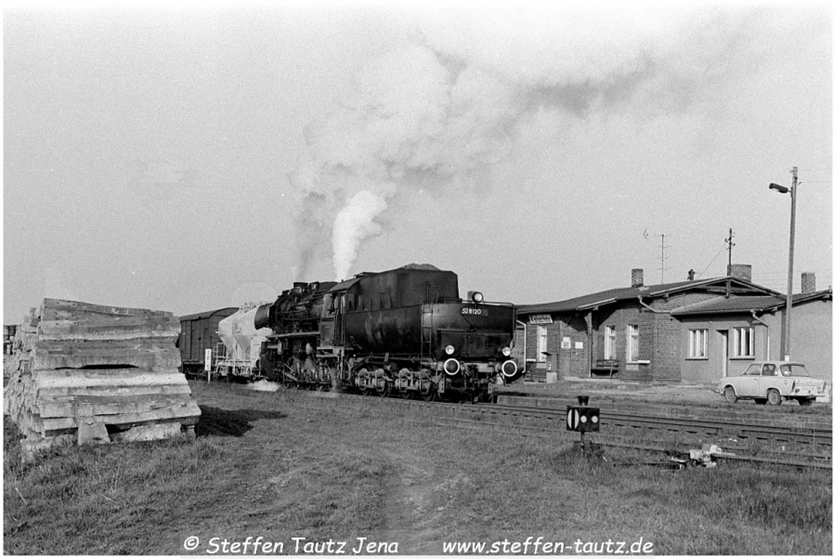 Im November 89 gab es einen kleinen Plandampf mit 52 8120 und der Luckauer 65 1008. 52 8120 bespannte einen P-Zug von Herzberg nach Falkenberg bei Klein Rössen