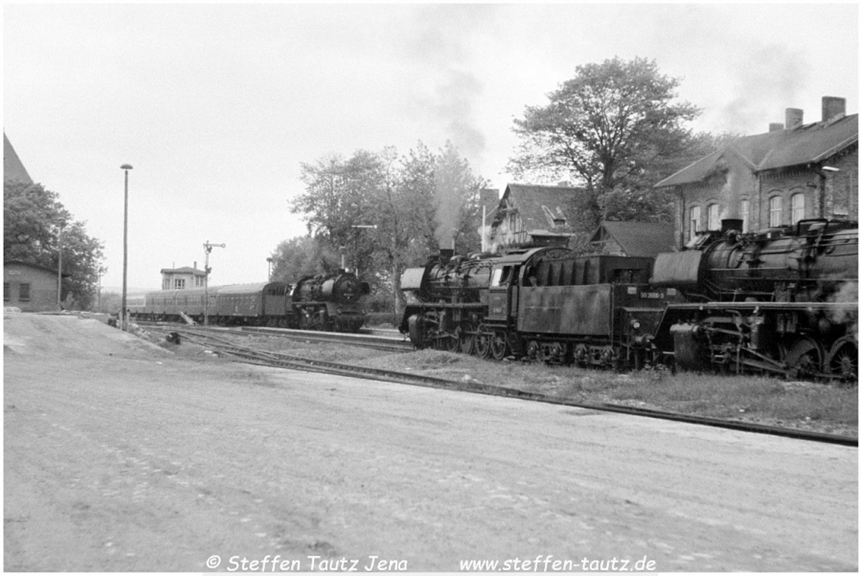 50 3553 kreuzt mit dem Ng 61792 in Dittfurt, alle drei Dampfer auf einem Bild. Mai 86