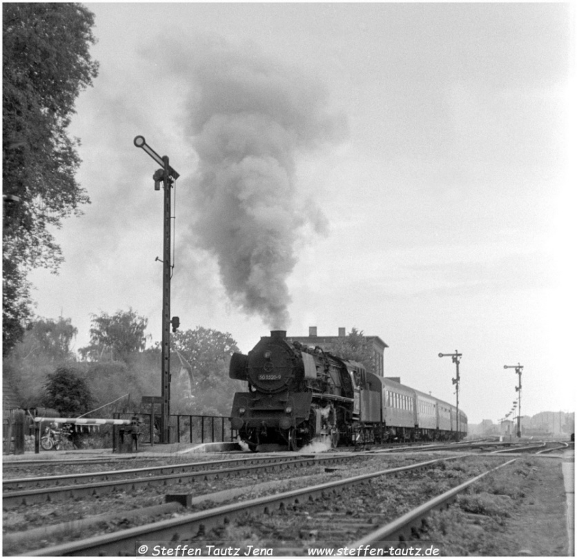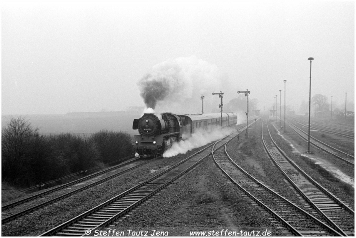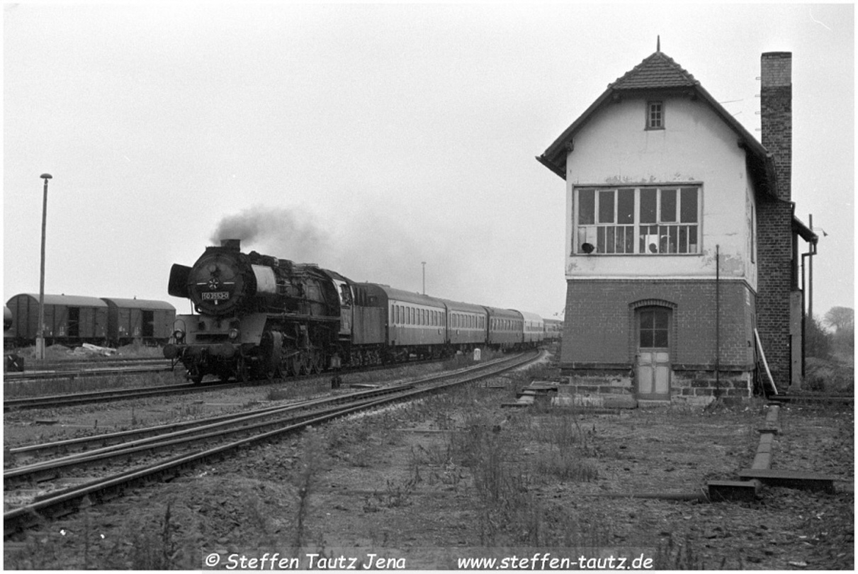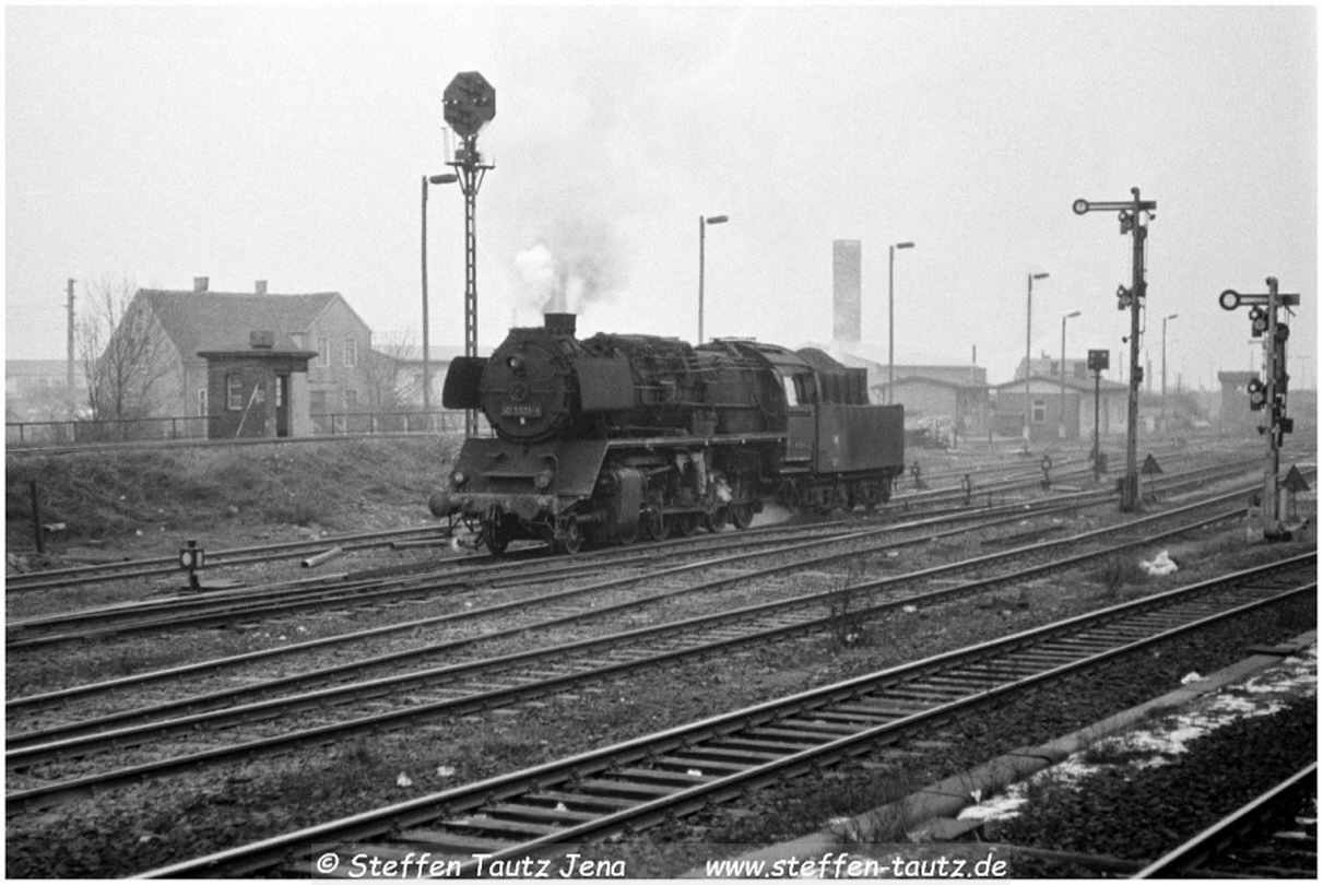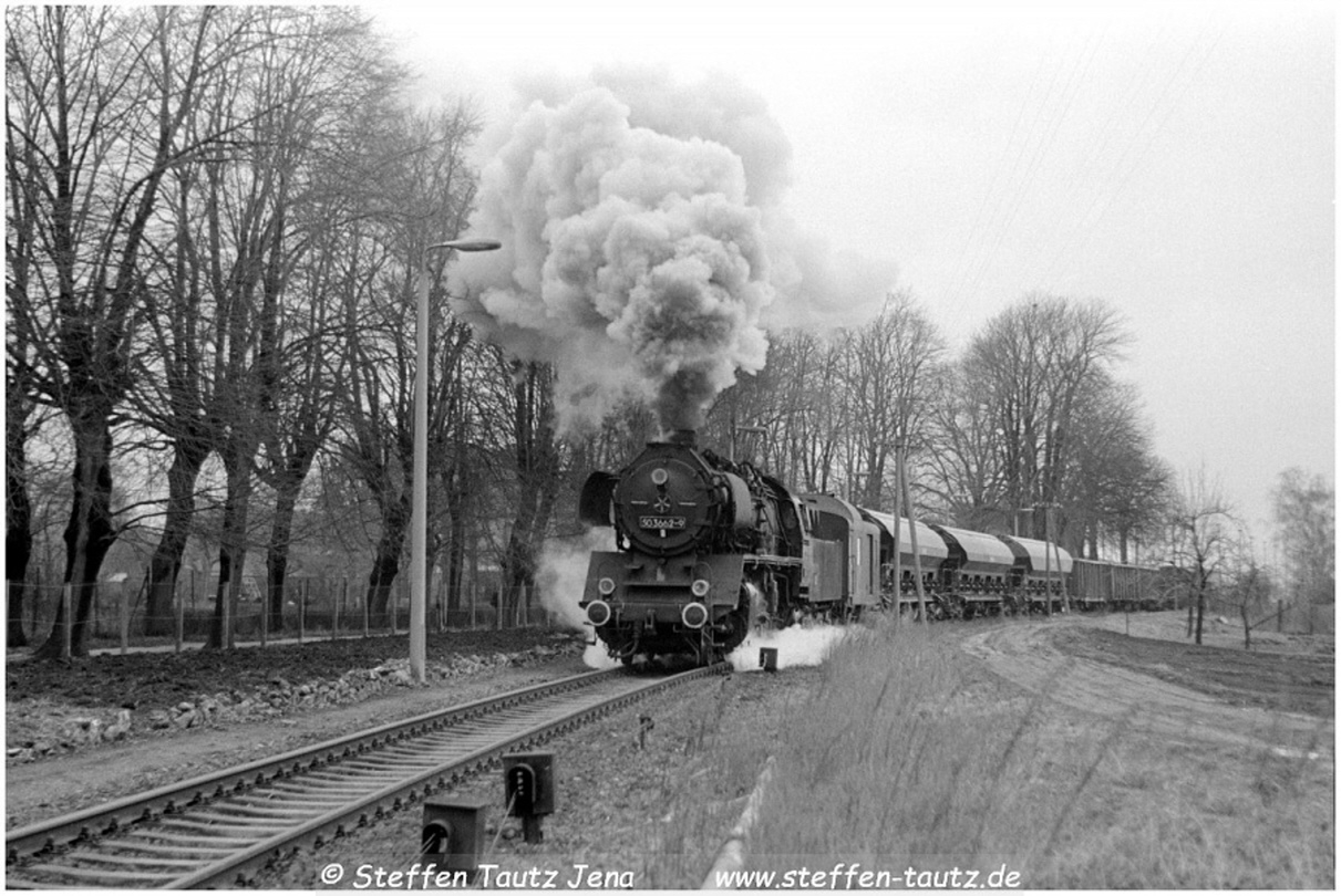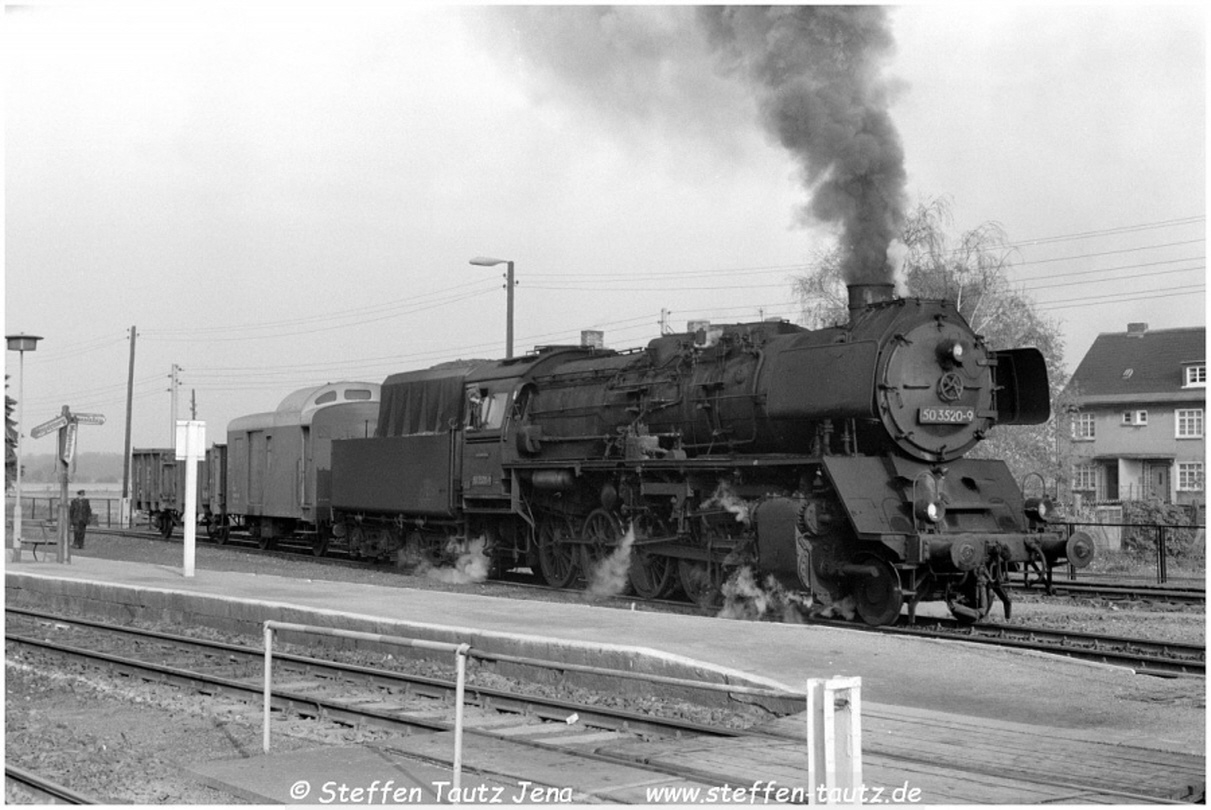 Im März 84 ist 50 3653 vorm Ascherslebener P-Zug in Halberstadt