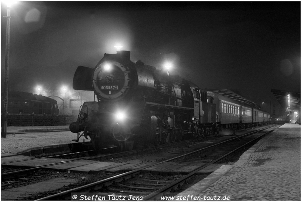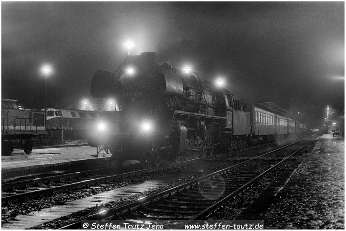 50 3557 ist in Aschersleben mit dem P-Zug aus Halberstadt angekommen Feb 86