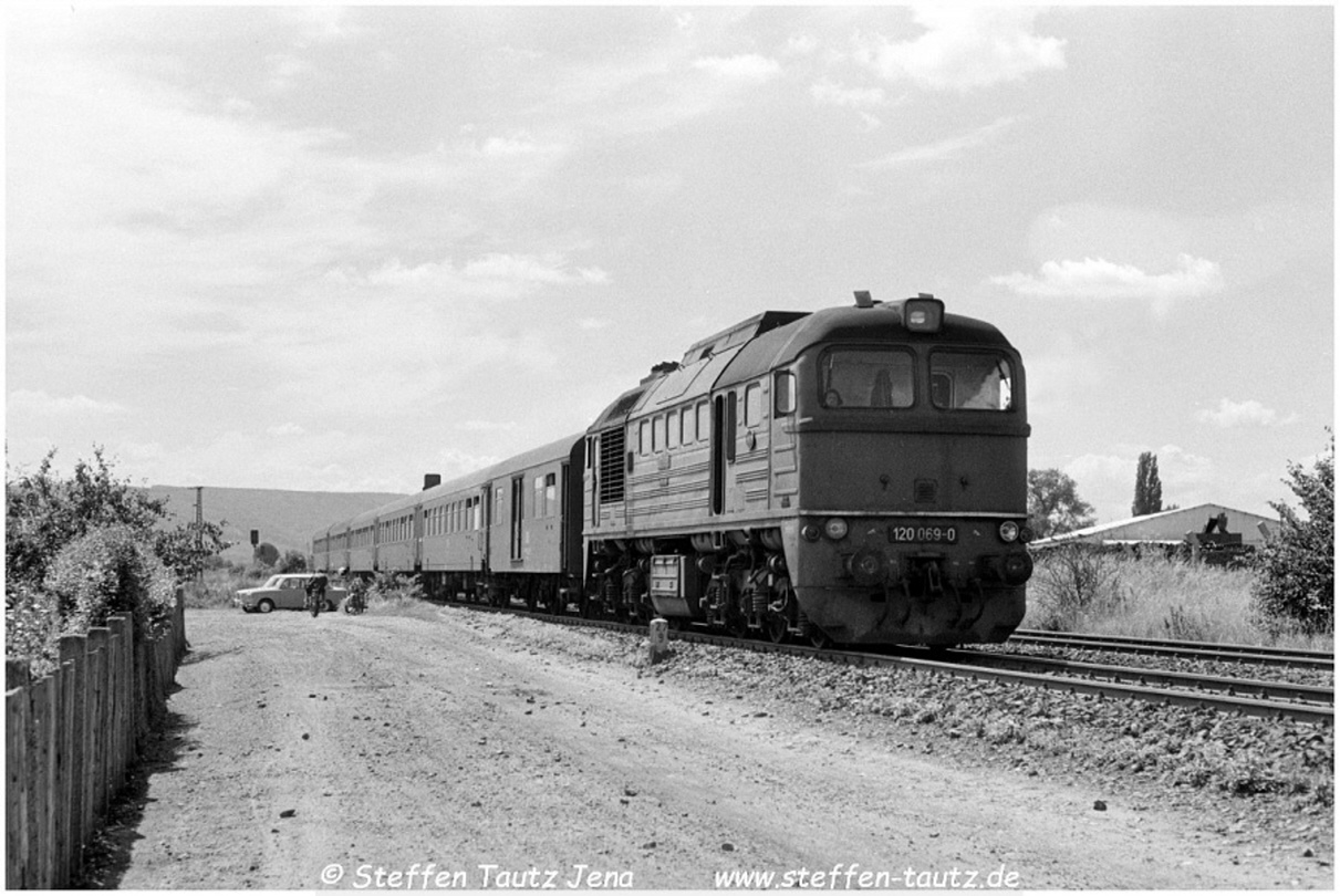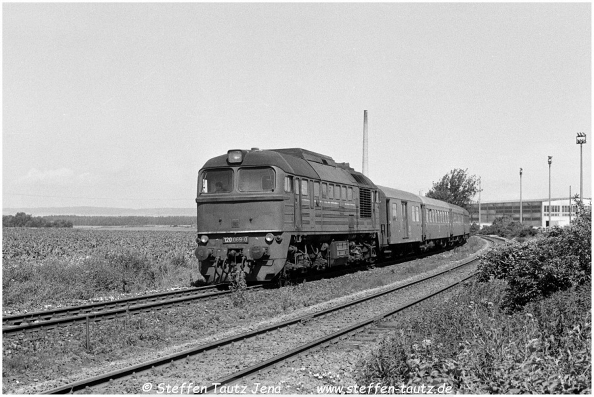 Ein Personenzug Umlauf Frohse-Quedlinburg wurde im Sommer öfter mit Güstener Wumme gefahren, hier an der Einfahrt Quedlinburg. Juli 87