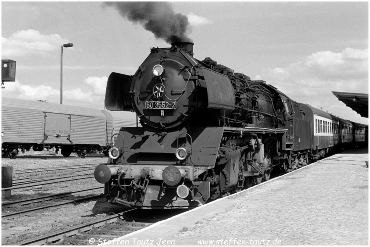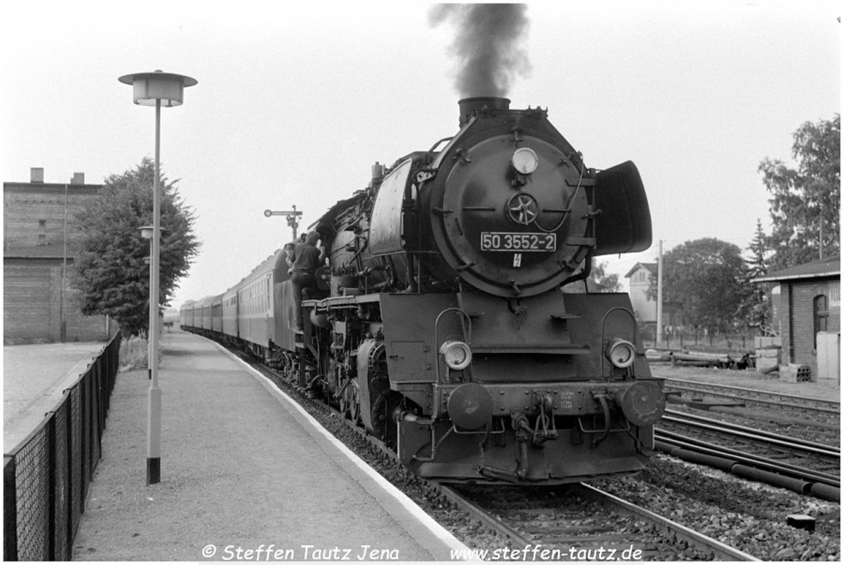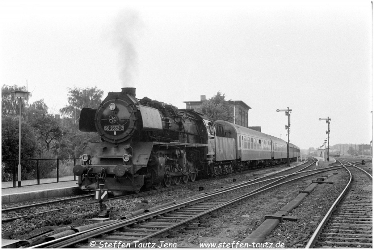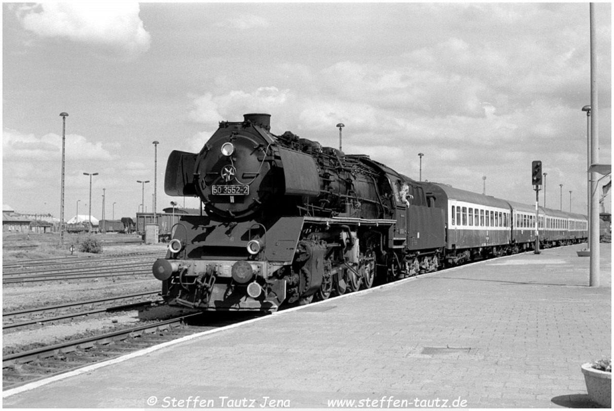 Am Nachmittag bespannte die 50 3552 als Schlußlok den D Zug Wagenpark nach Thale, den sie von Thale nach Halberstadt zurück fährt. Halberstadt Juli 87