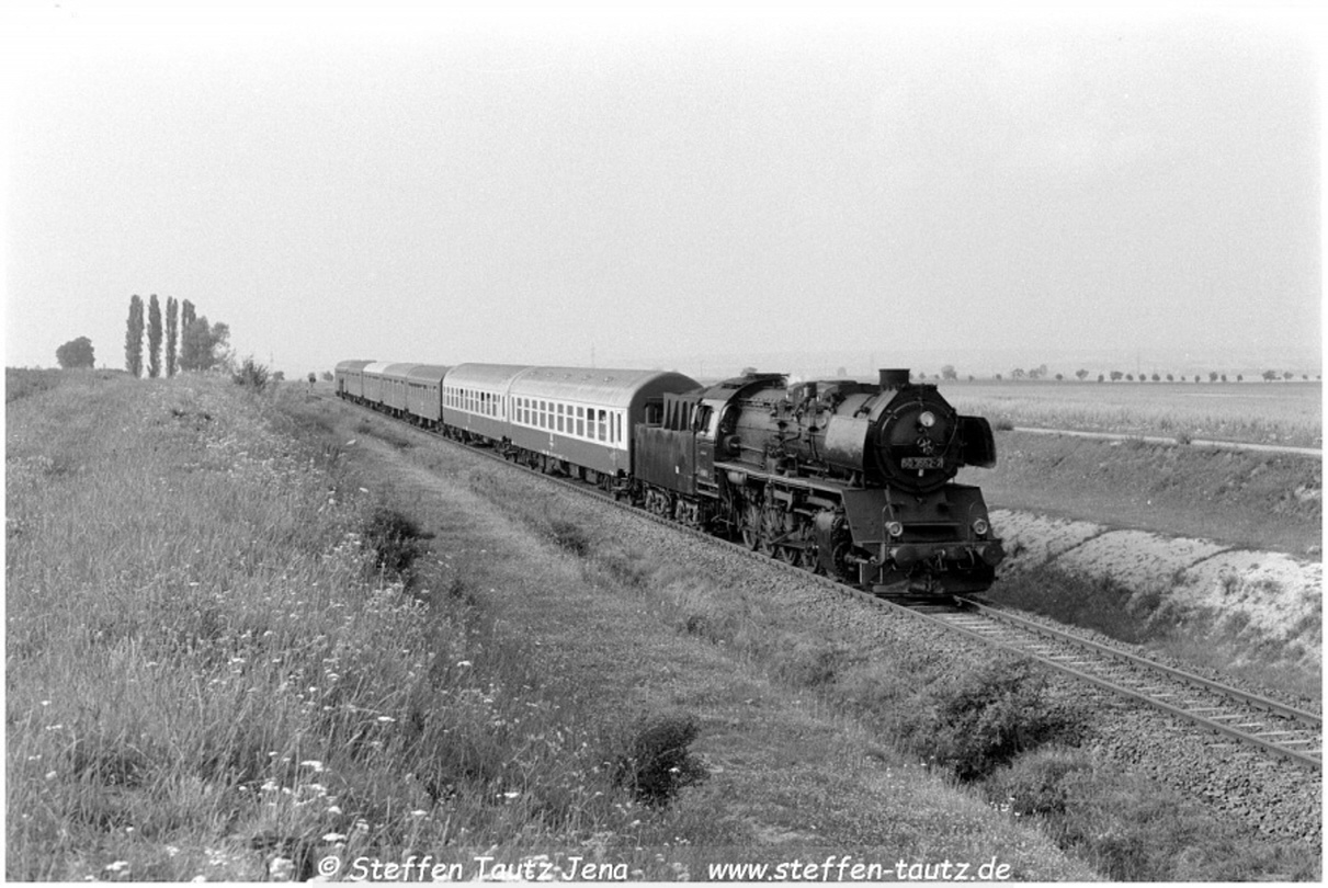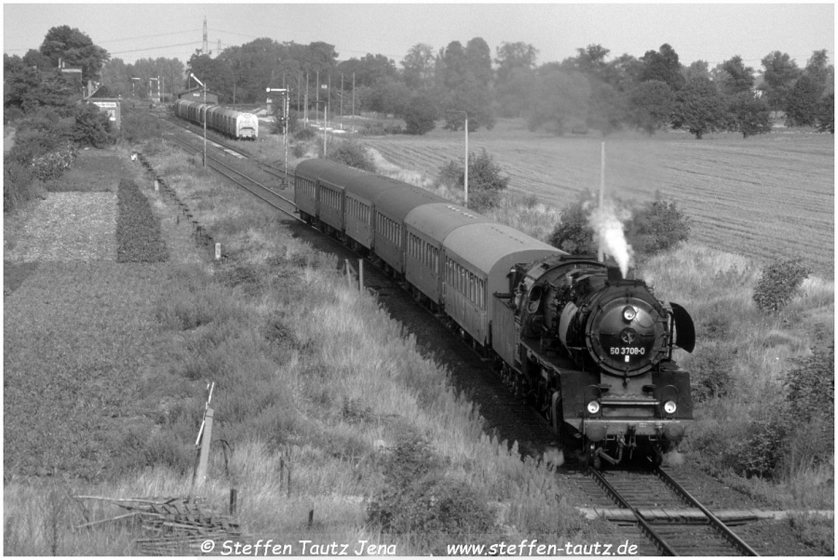 Im Sommer 1990 fuhr 50 3708 wieder mal Plandienst nach Magdeburg Hier verlässt sie Oschersleben/Bode