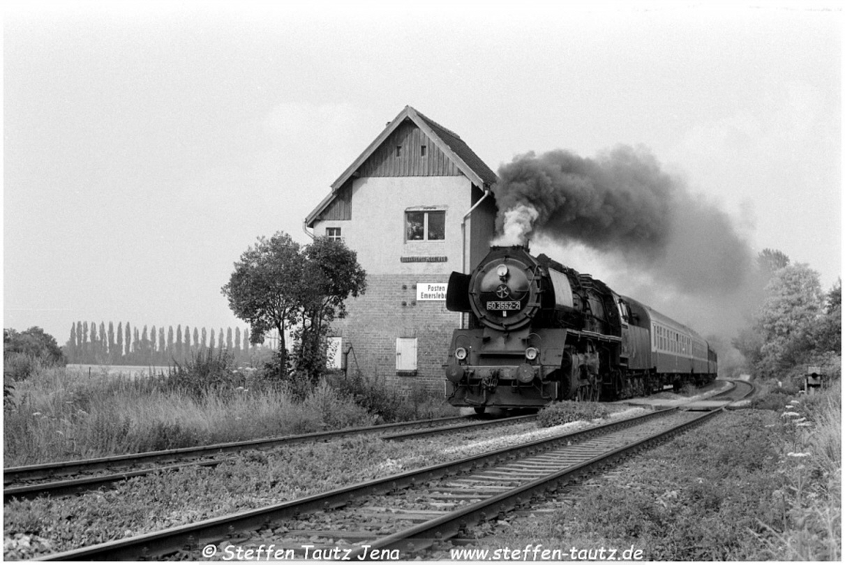 50 3552 mit P 19408 durchfährt Ditfurt Juli 87