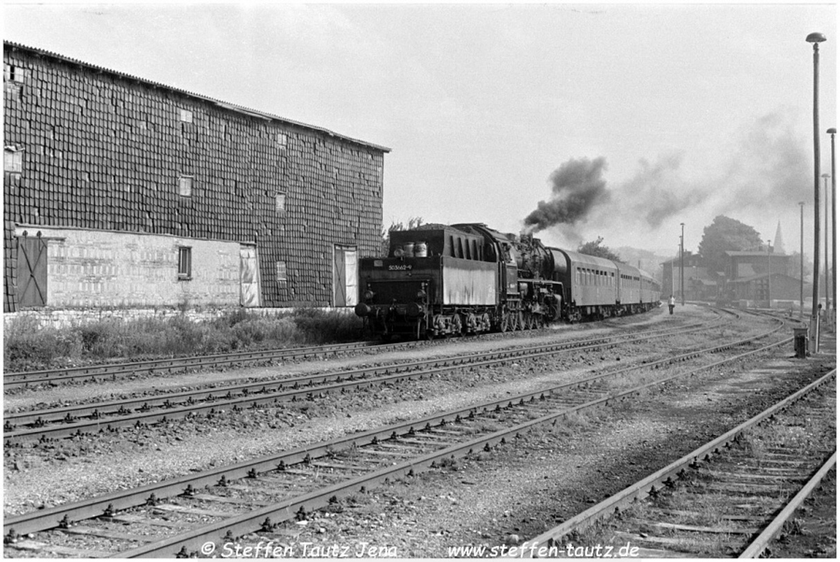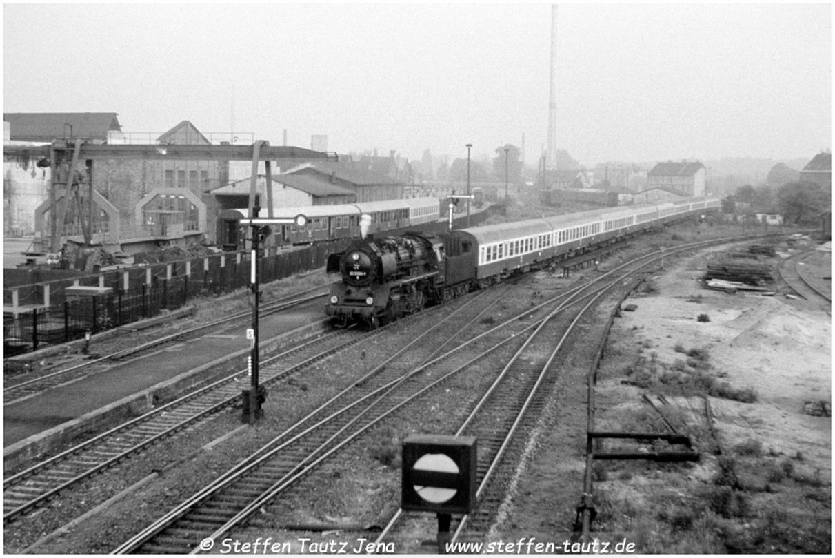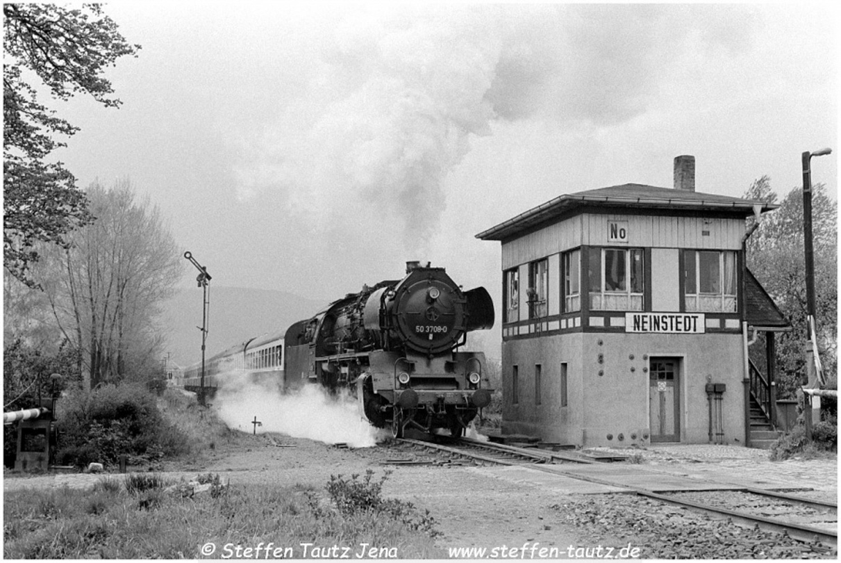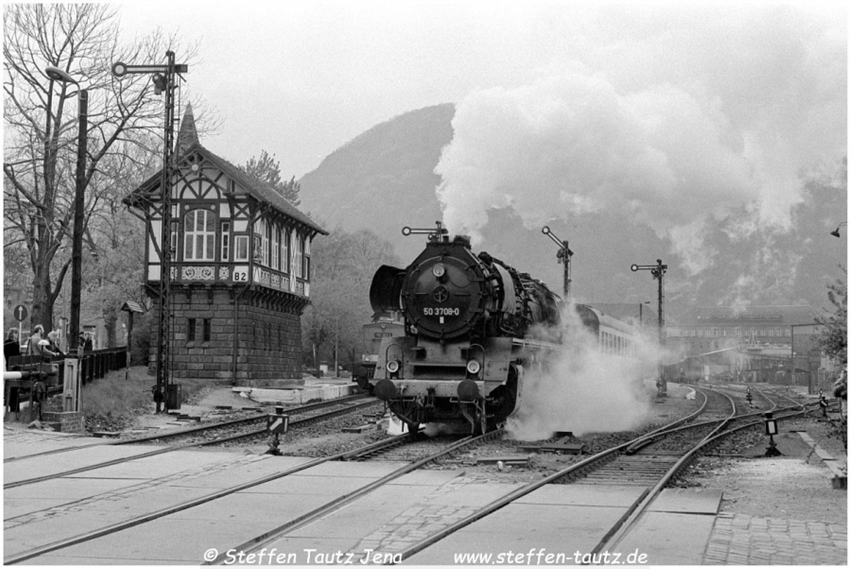 50 3618 bespannt die Übergabe Spiegelsberge und duchfährt den Personenbahnhof Okt 84