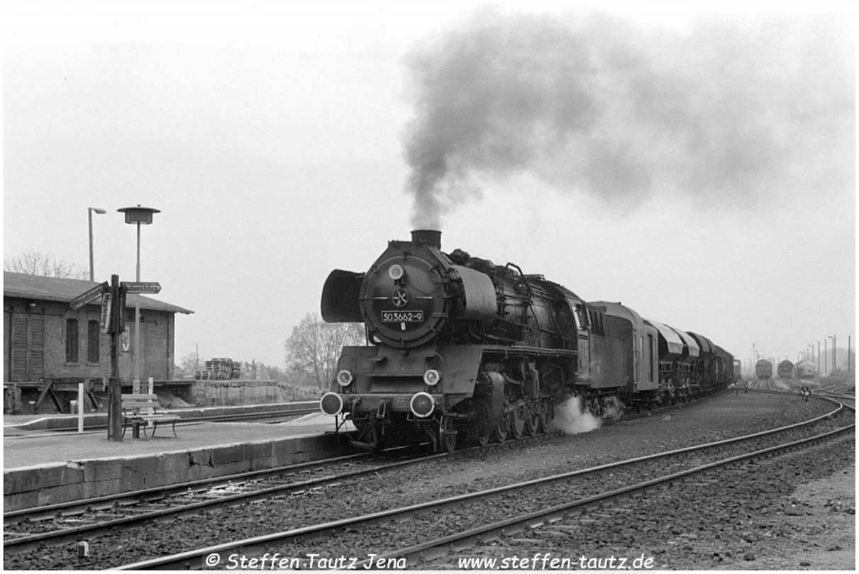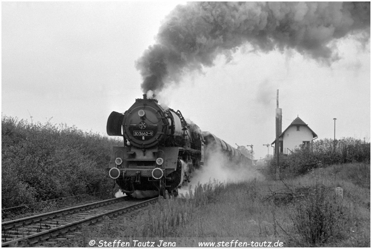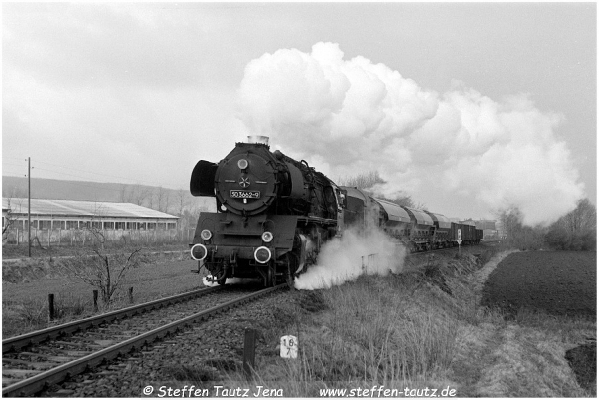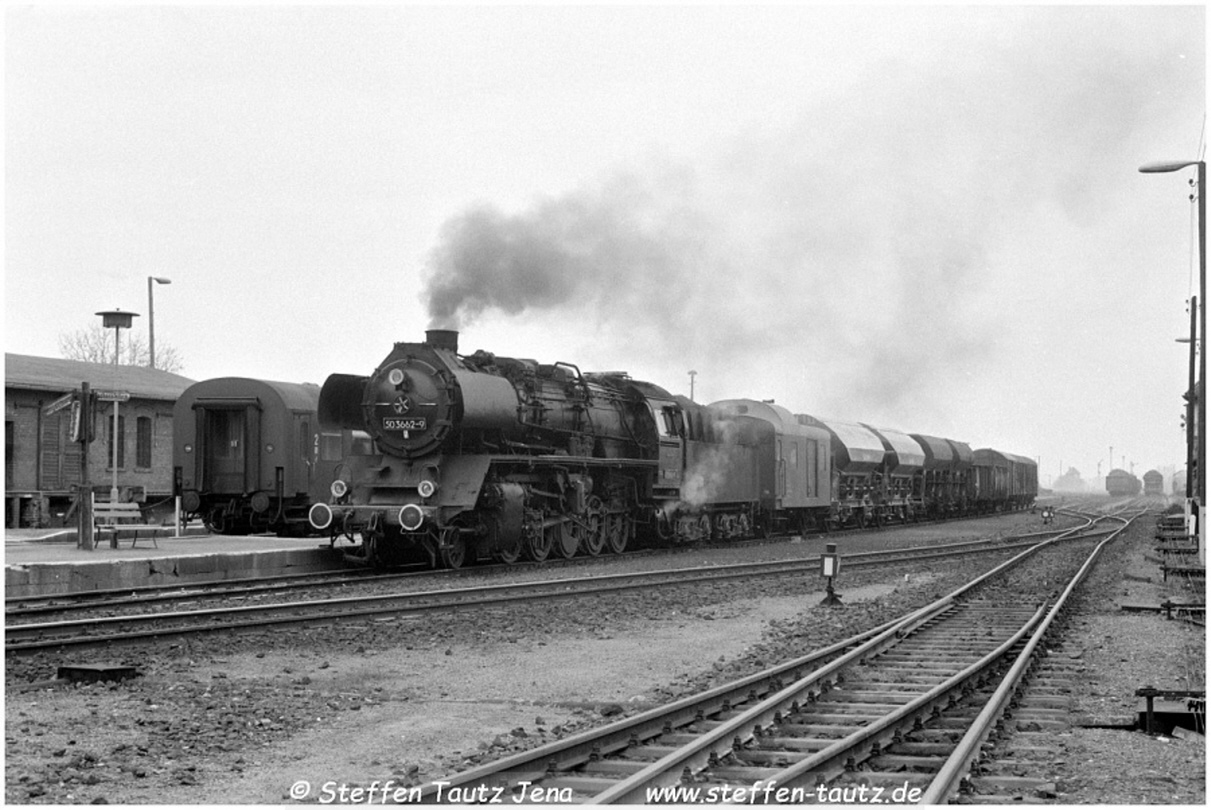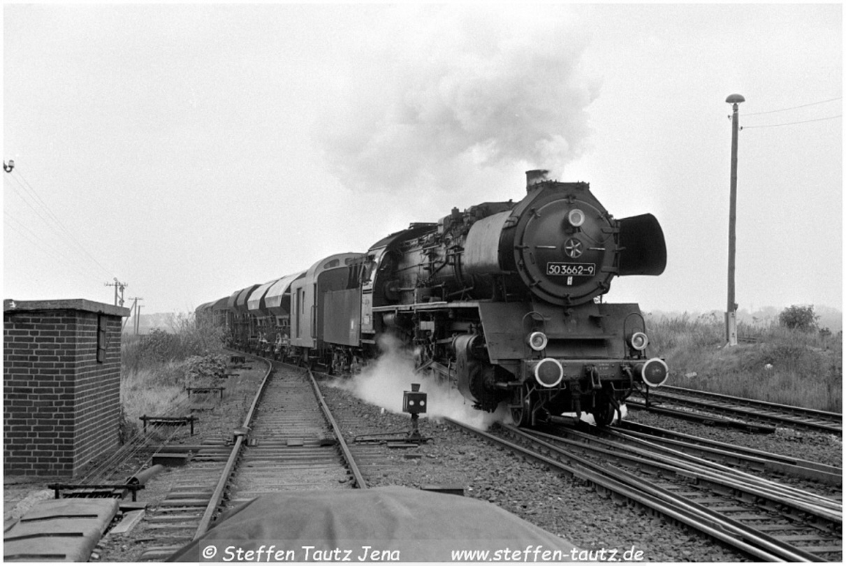 Nur noch 50 3662 war als Einzelkämpfer im Dreitageplan im Einsatz. Hier hatte sie Dienst vorm P 19413 bei Ausfahrt Ditfurt Feb 88