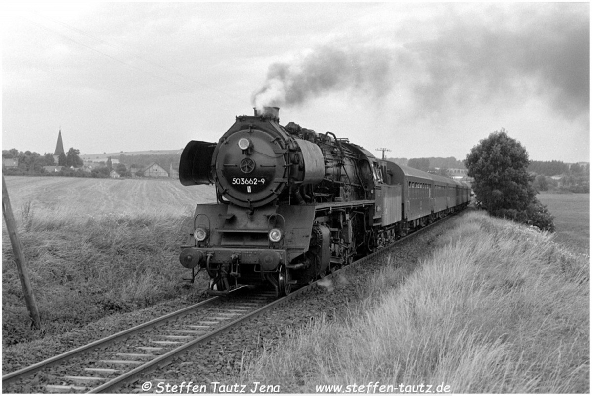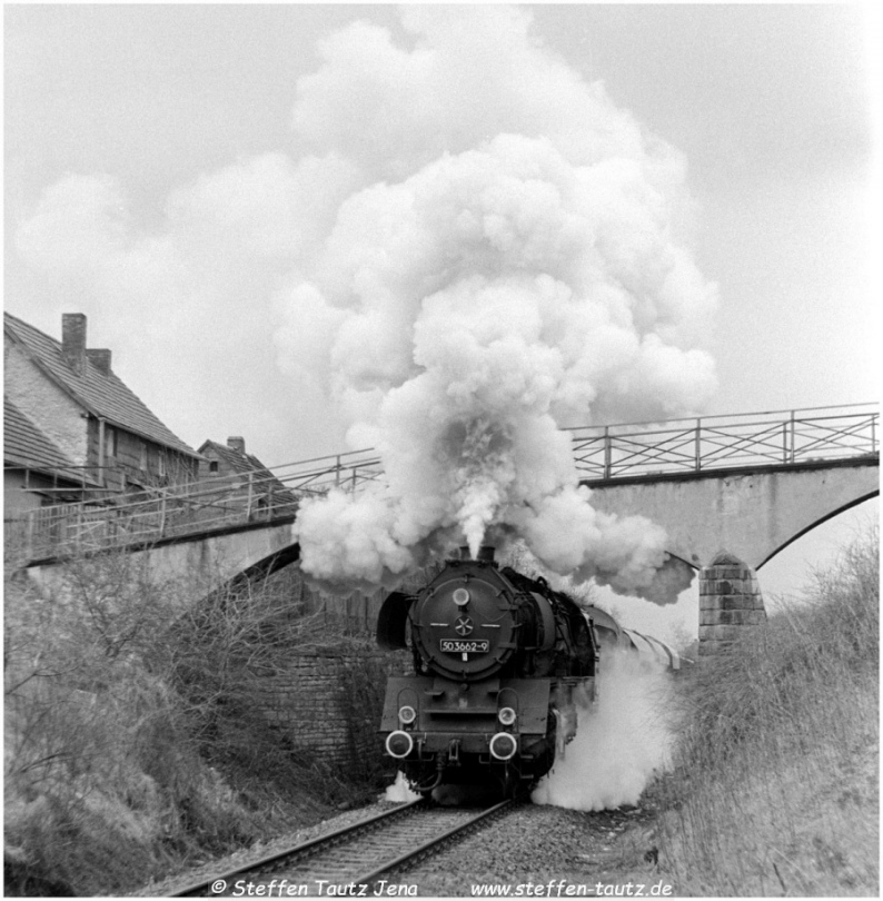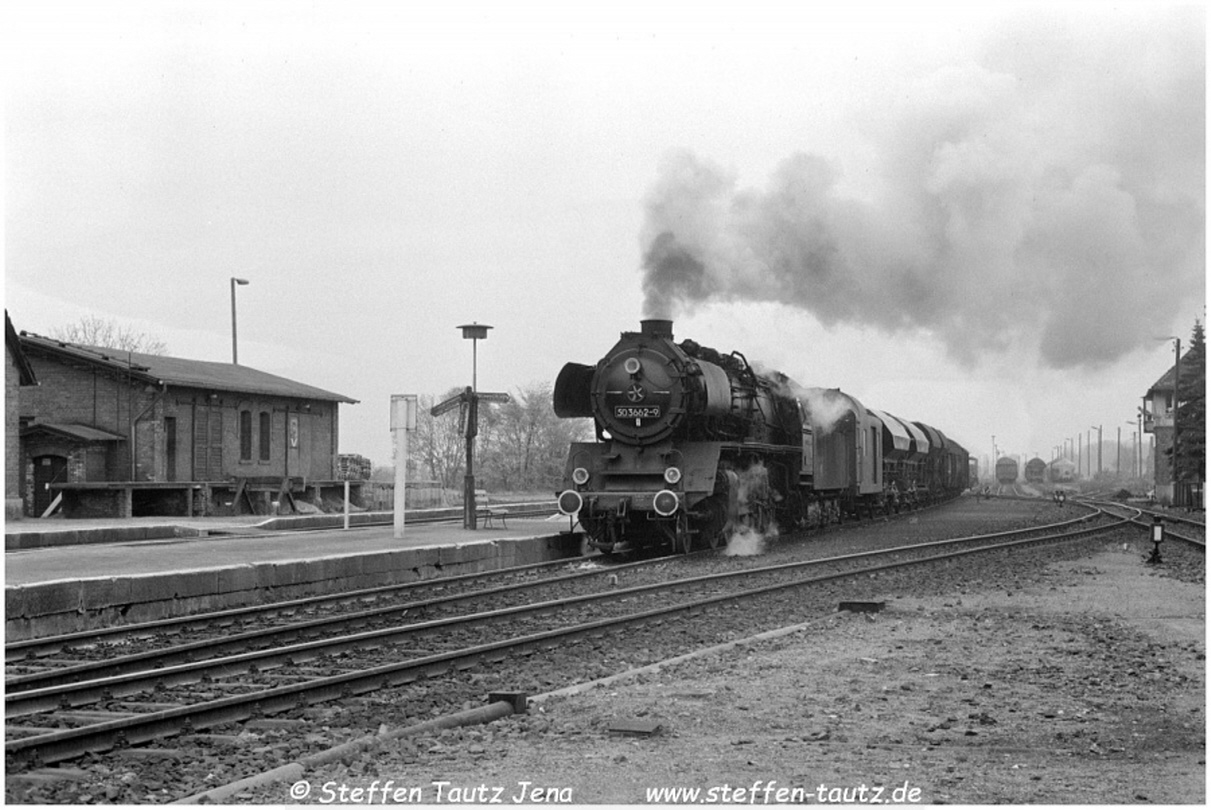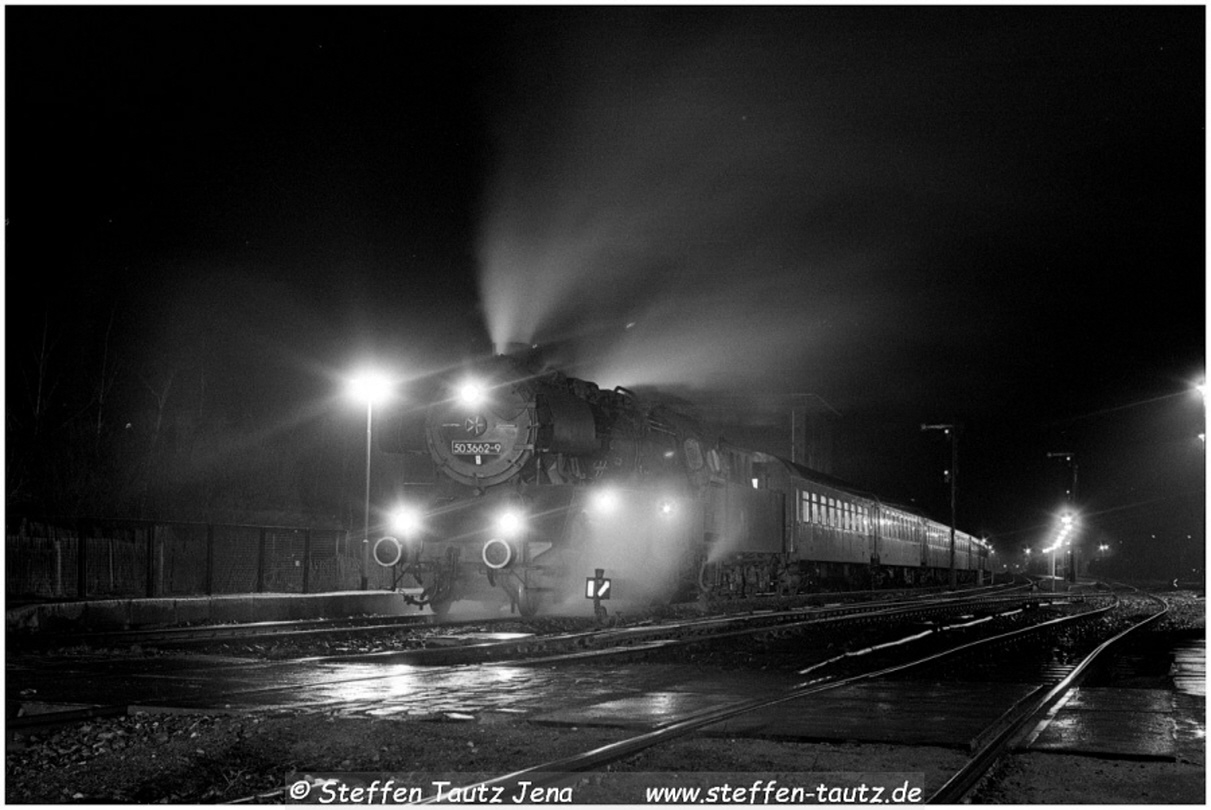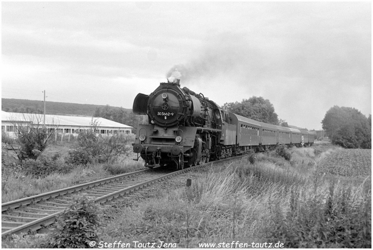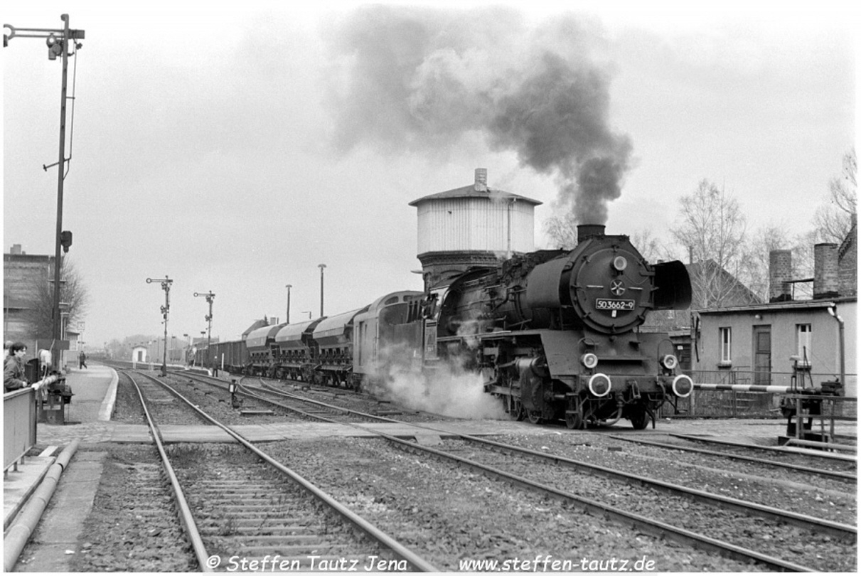 Nur noch 50 3662 war als Einzelkämpfer im Dreitageplan im Einsatz. Hier hatte sie Dienst vorm P 19413 bei Ausfahrt Ditfurt Feb 88