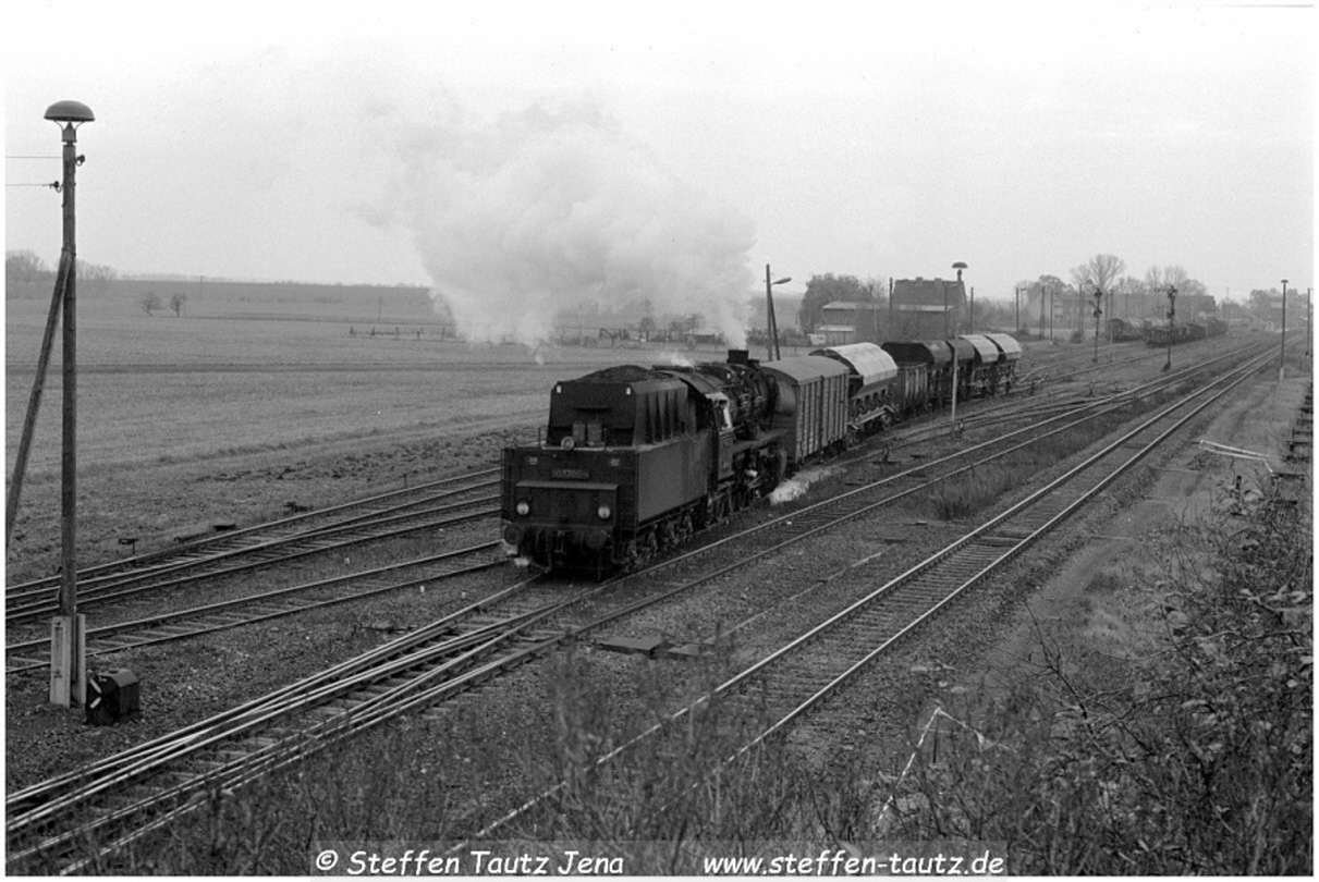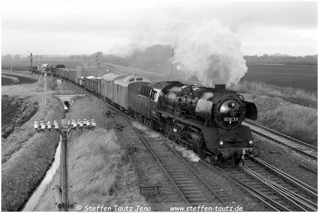 Im Februar 88 war 50 3662 die letzte einsatzfähige Lok in Halberstadt, an diesem Tag bespannte sie den Nahgüterzug Badersleben-Nienhagen hier bei der Ausfahrt Badersleben. Grund genug, diesen Zug mal zu verfolgen