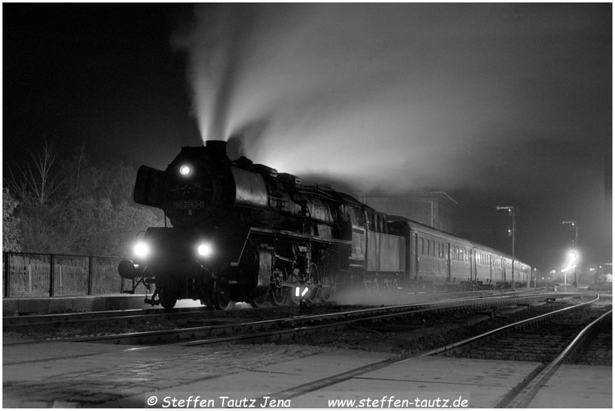 Am Abend wartet 50 3553 mit dem Arbeiterpendel in Nienhagen. Zeit für Nachtaufnahmen Dez 87