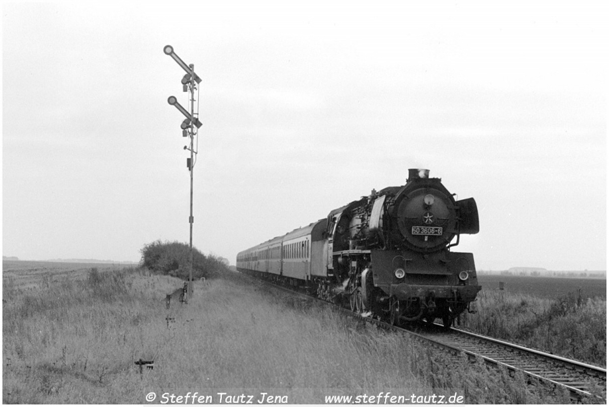 50 3606 bespannte den Ascherslebener Personenzug März 86