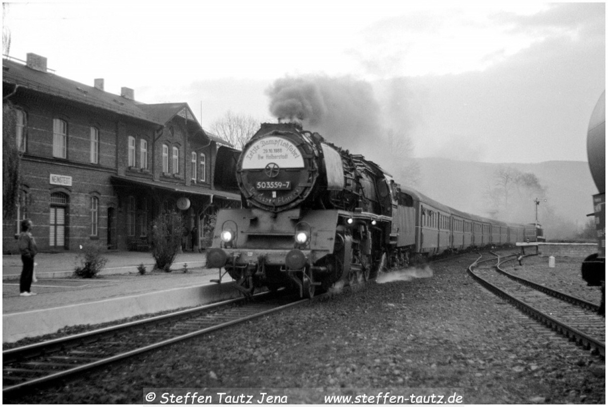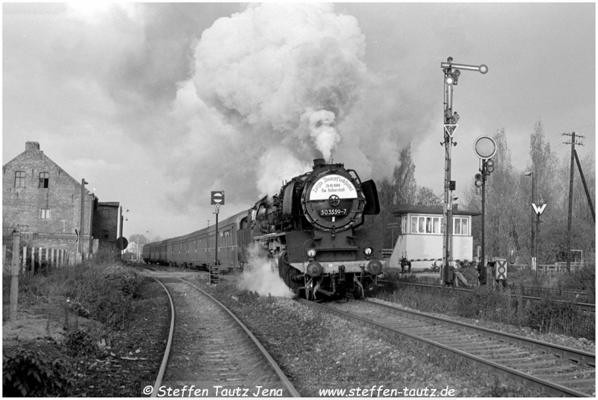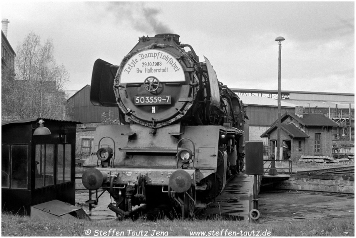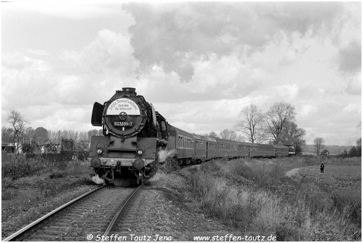 Der finale Tag, 29.10.1988 Abschiedsfahrt mit 50 3559 und P-Zug Umlauf Halberstadt-Magdeburg-Thale-Halberstadt hier bei der Ausfahrt Halberstadt