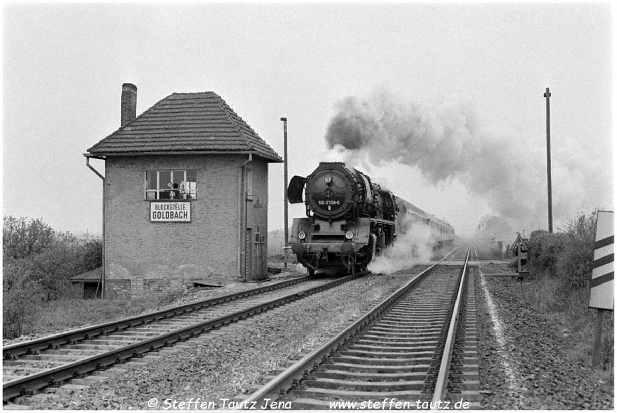 Bereits Ostern 1990 kam dann die neu hauptuntersuchte Lok 50 3708 vor dem P 19408 zum Einsatz, hier wieder am Bk Goldbach