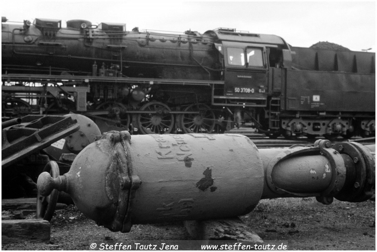 Symbolisch für das Dampfende diese Szene im Bw Halberstadt. Viele Wasserkräne lagen wild gestapelt im Bw Halberstadt rum