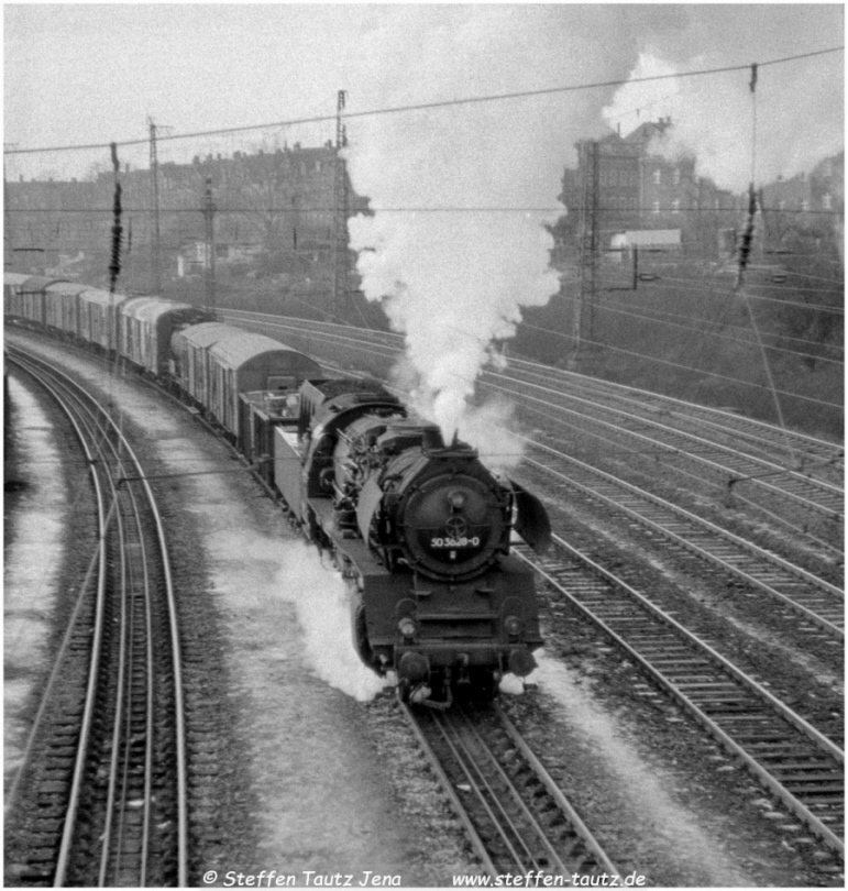 Hier noch mal die 50 3628 mit dem Döbelner Nahgüterzug Dez 83