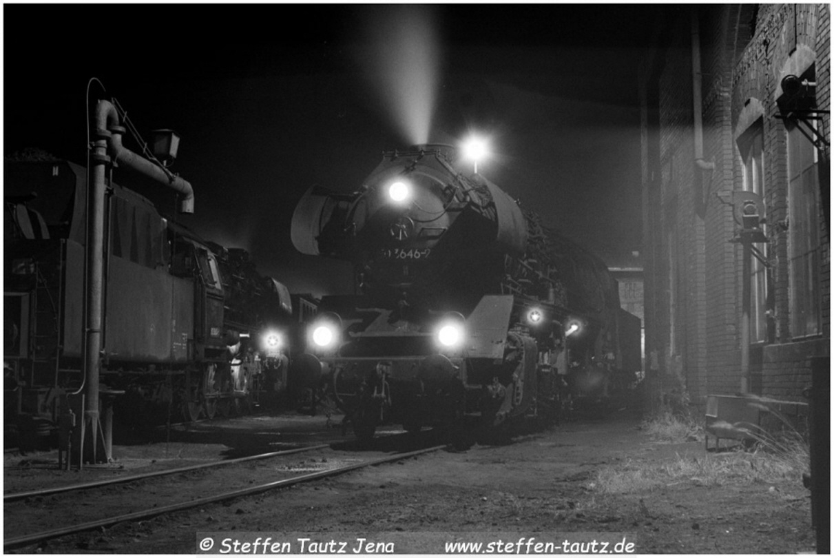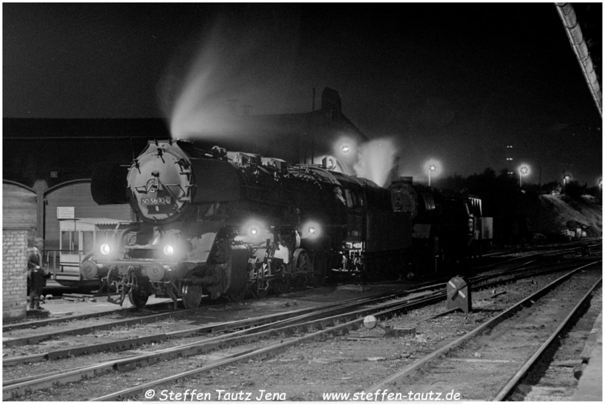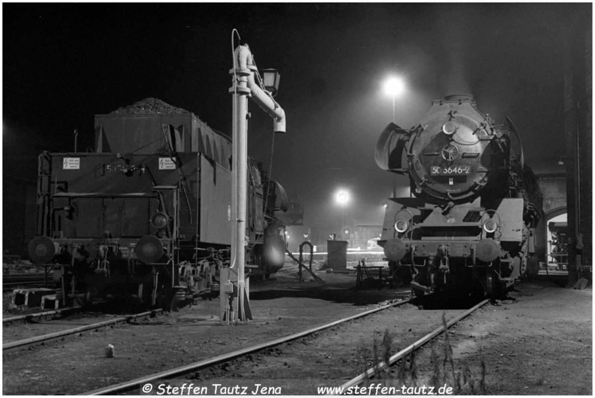 Die Auer 50 3646 macht Nachtpause im Bw Hilbersdorf 50 3650 mit rückgebauten Öl Tender heizt im Bw Aug 86