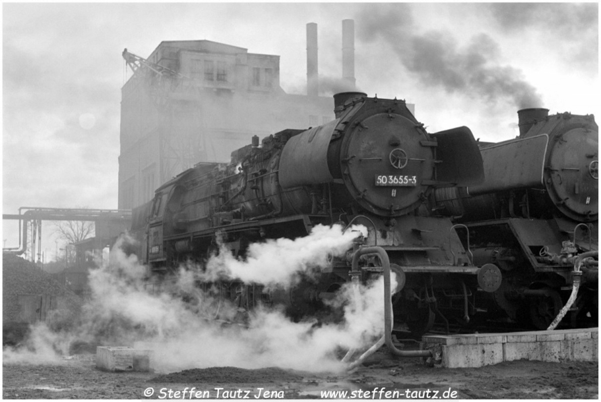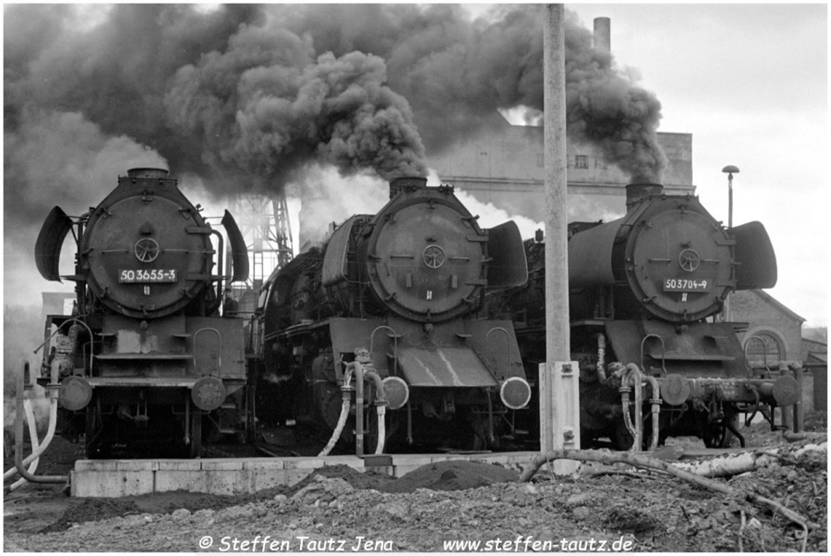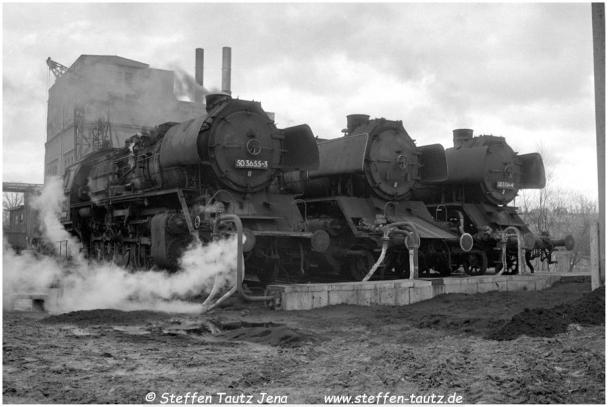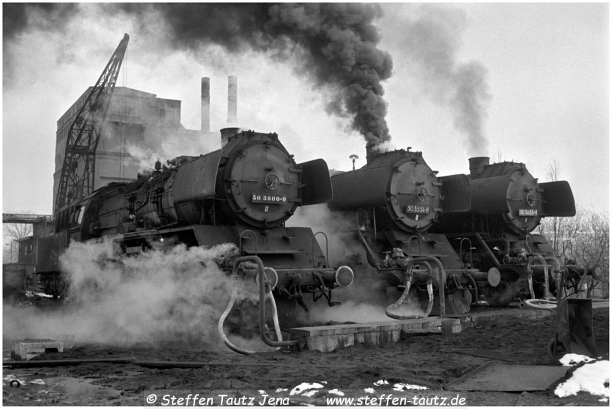 Mehrmals am Tag wurden die Loks zum restaurieren zum Bw Hilbersdorf weggezogen und ausgetauscht, hier heizen 50 3655 und 50 3554 und 50 3600
