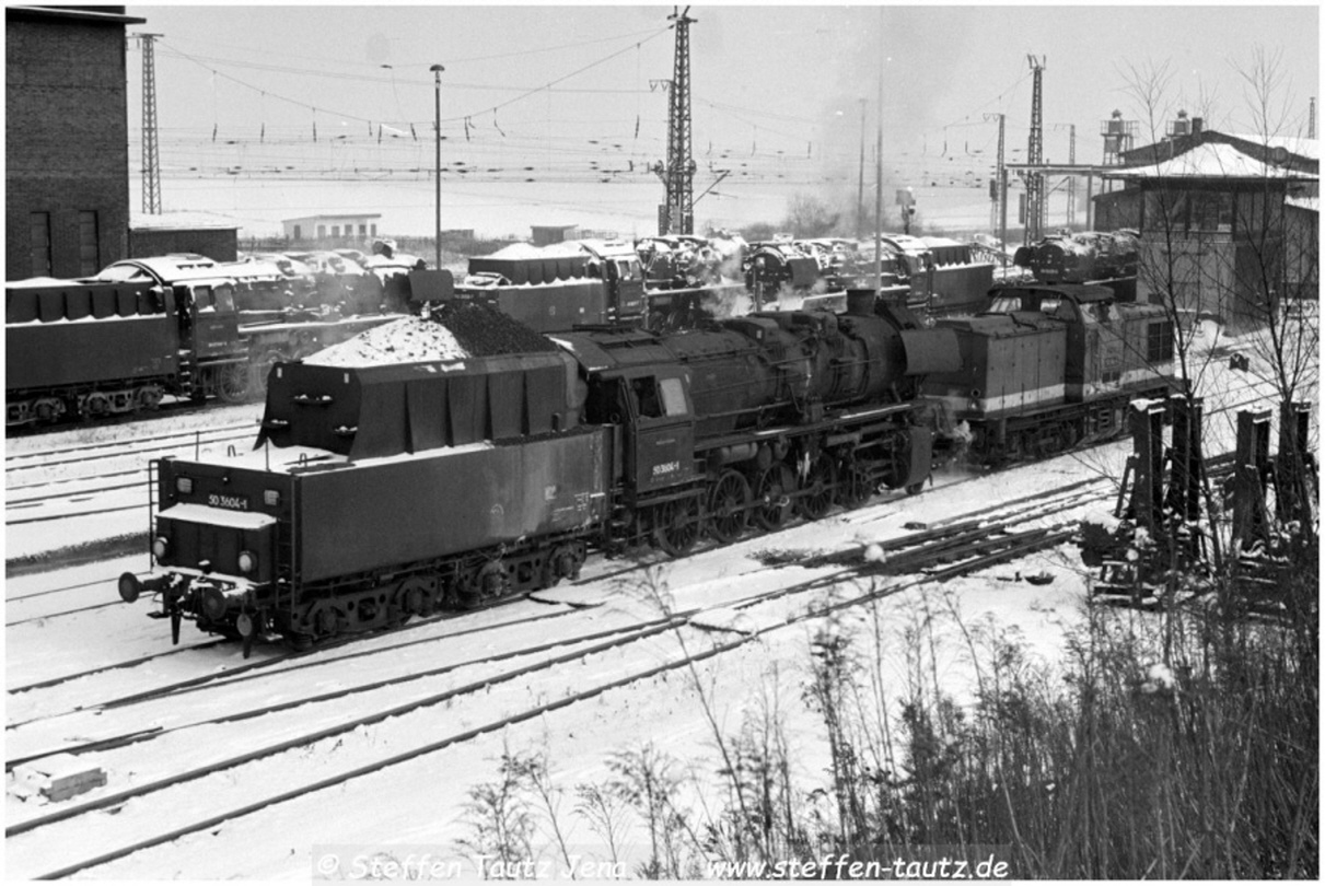 50 3689 im Bw K-M-St Hilbersdorf als Planlok mit Hilbersdorfer Personal Dez 83