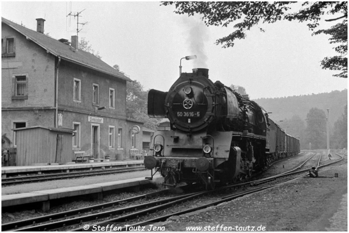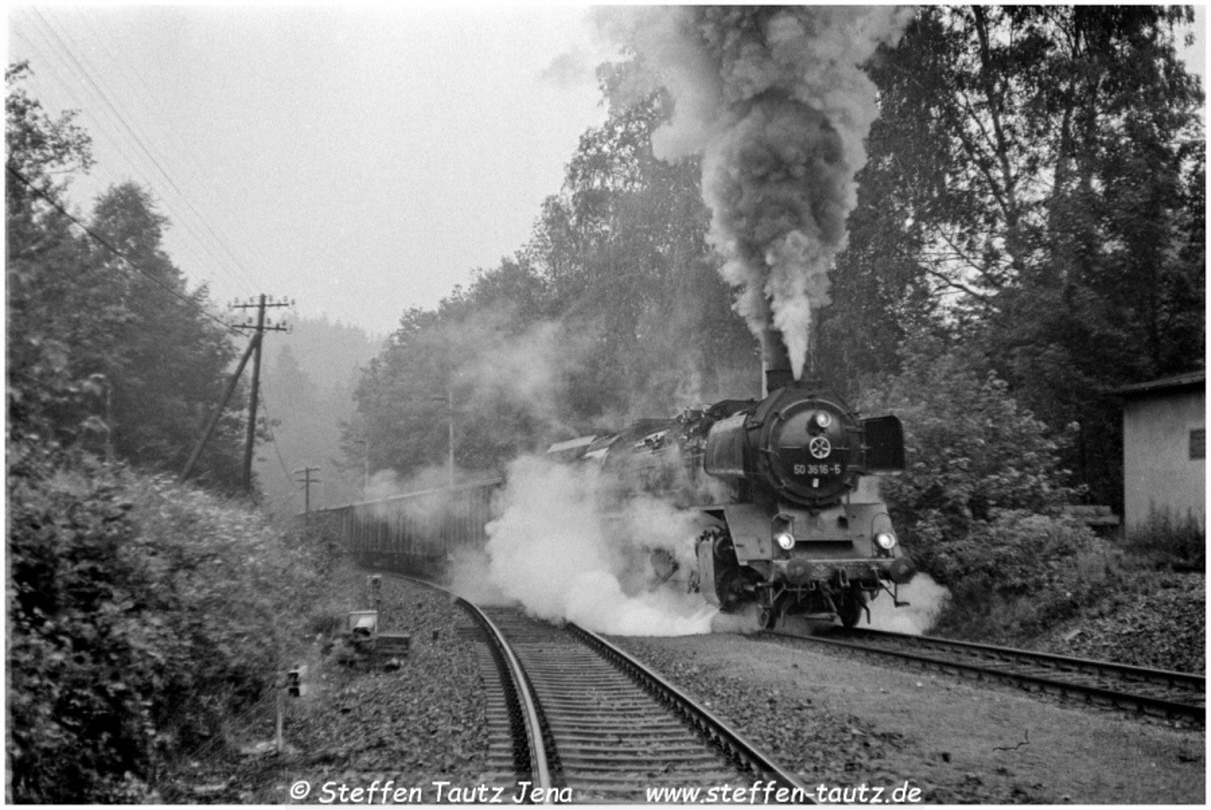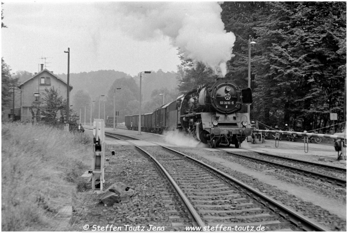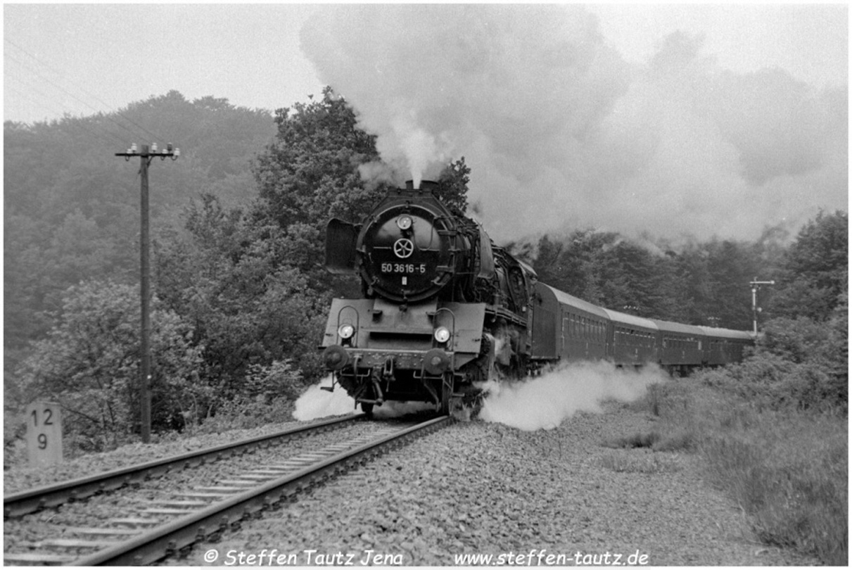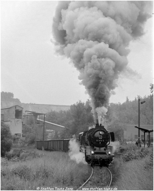 50 3616 war längere Zeit im RAW Meiningen und somit blieb dieser Lok der Heizlokumbau erspart. Im Juli 88 gab es Plandienst nach Berbersdorf im Rahmen des Frankenberger Stadtfest.