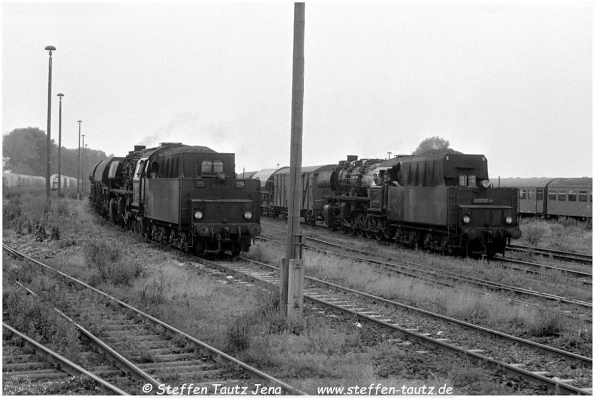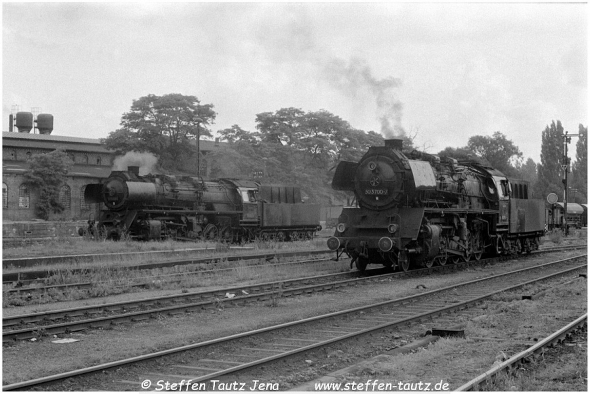 Im Bw Oschersleben warten 50 3700 und 50 3705 auf weitere Einsätze Juli 87