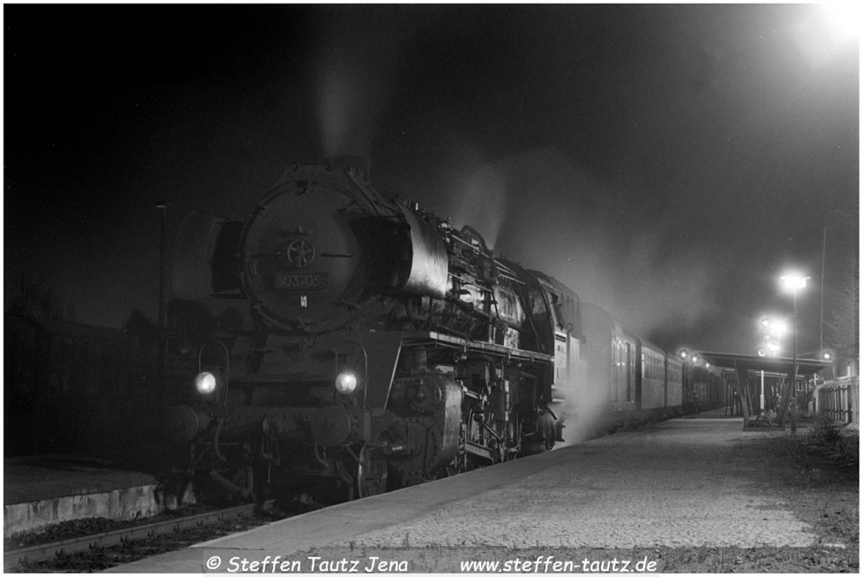 Mit Kerzenbeleiuchtung fuhr die 50 3705 dann planmäßig ihren Zug nach Gunsleben. Ich durfte auf der Lok mitfahren. Oschersleben Dez 87