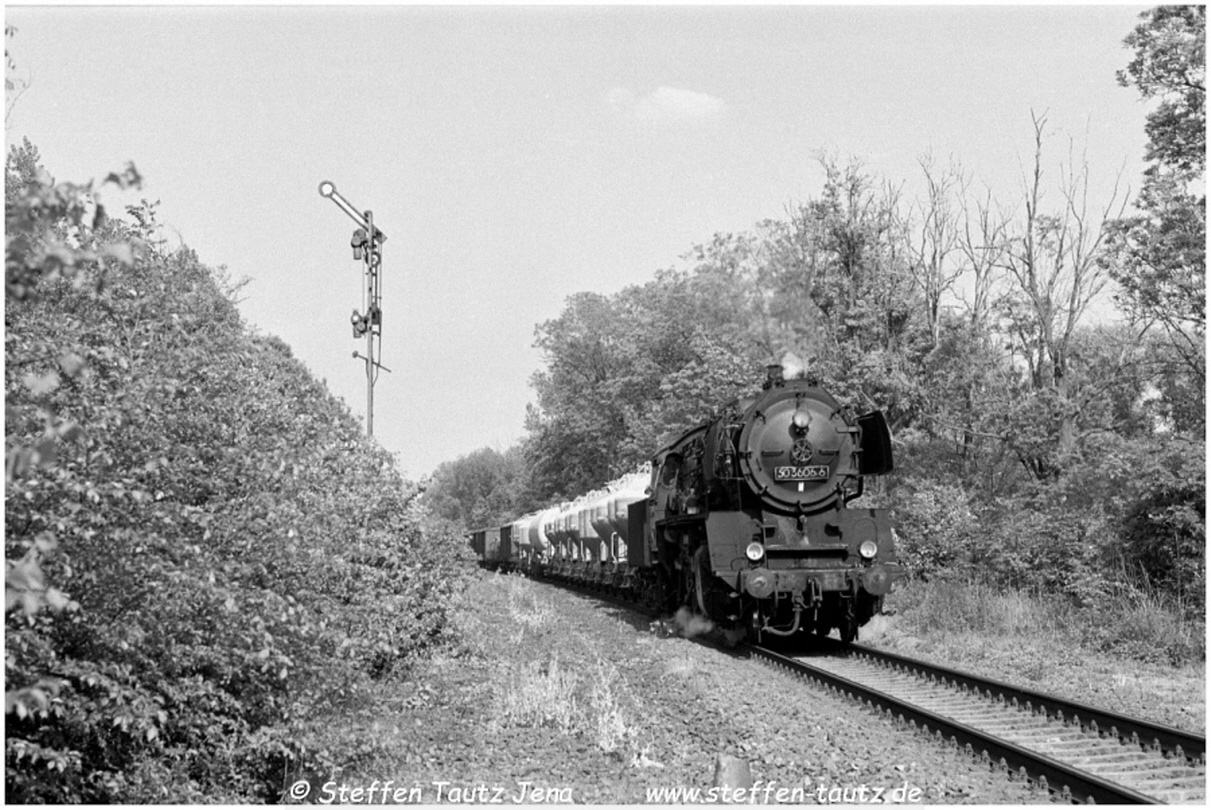 Auch 50 3606 ist hier auf der Gunslebener Strecke zu sehen Mai 88